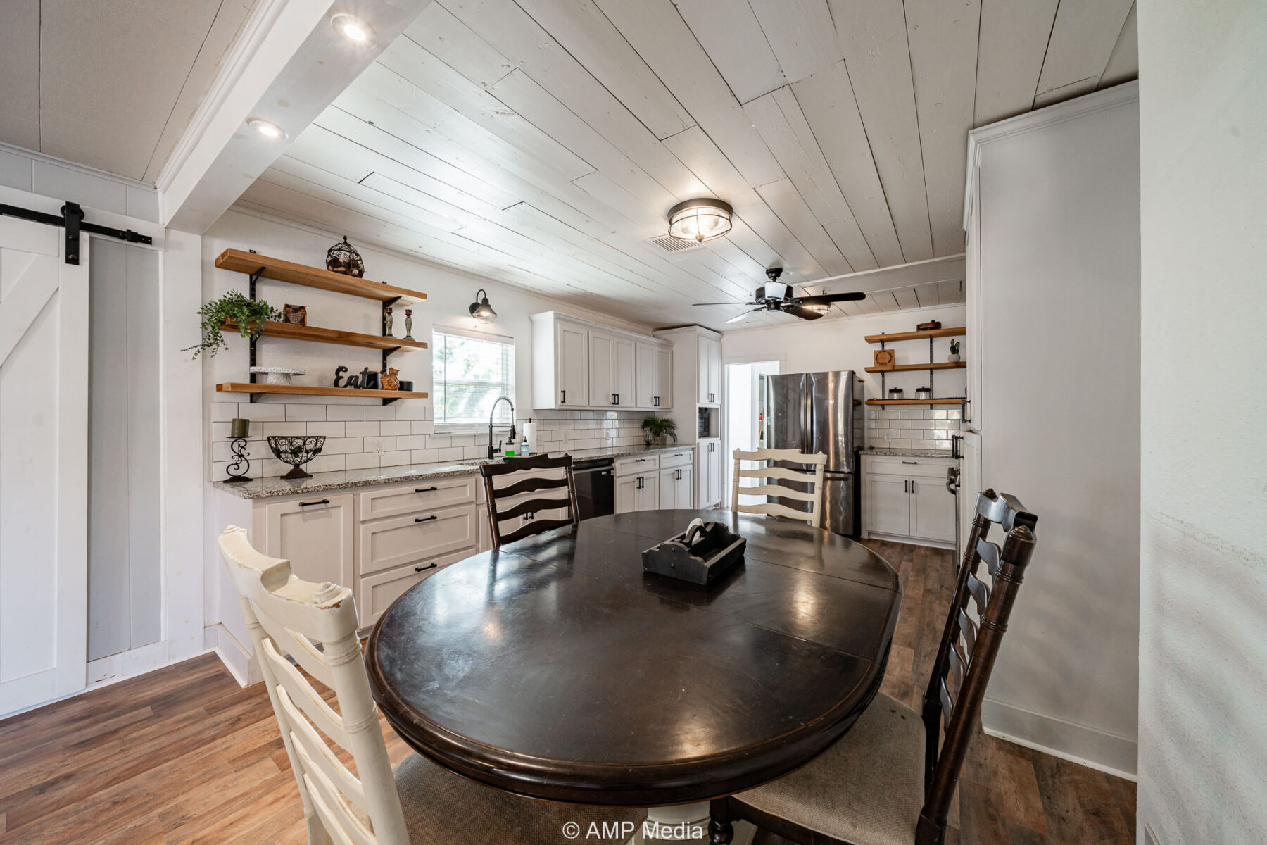 Charming and finished in a modern farmhouse contemporary style, this beautifully updated home sits on an oversized lot on the outskirts of town. Recently painted, the home features four bedrooms, including two master suites, and two and a half bathrooms. The open living and kitchen area features a wood-burning fireplace, granite countertops, and updated appliances. From here, the space flows naturally through the laundry room to a great covered back patio.