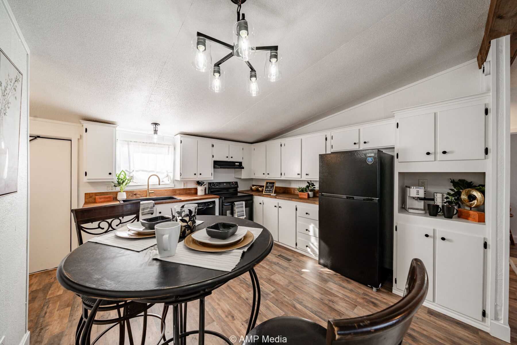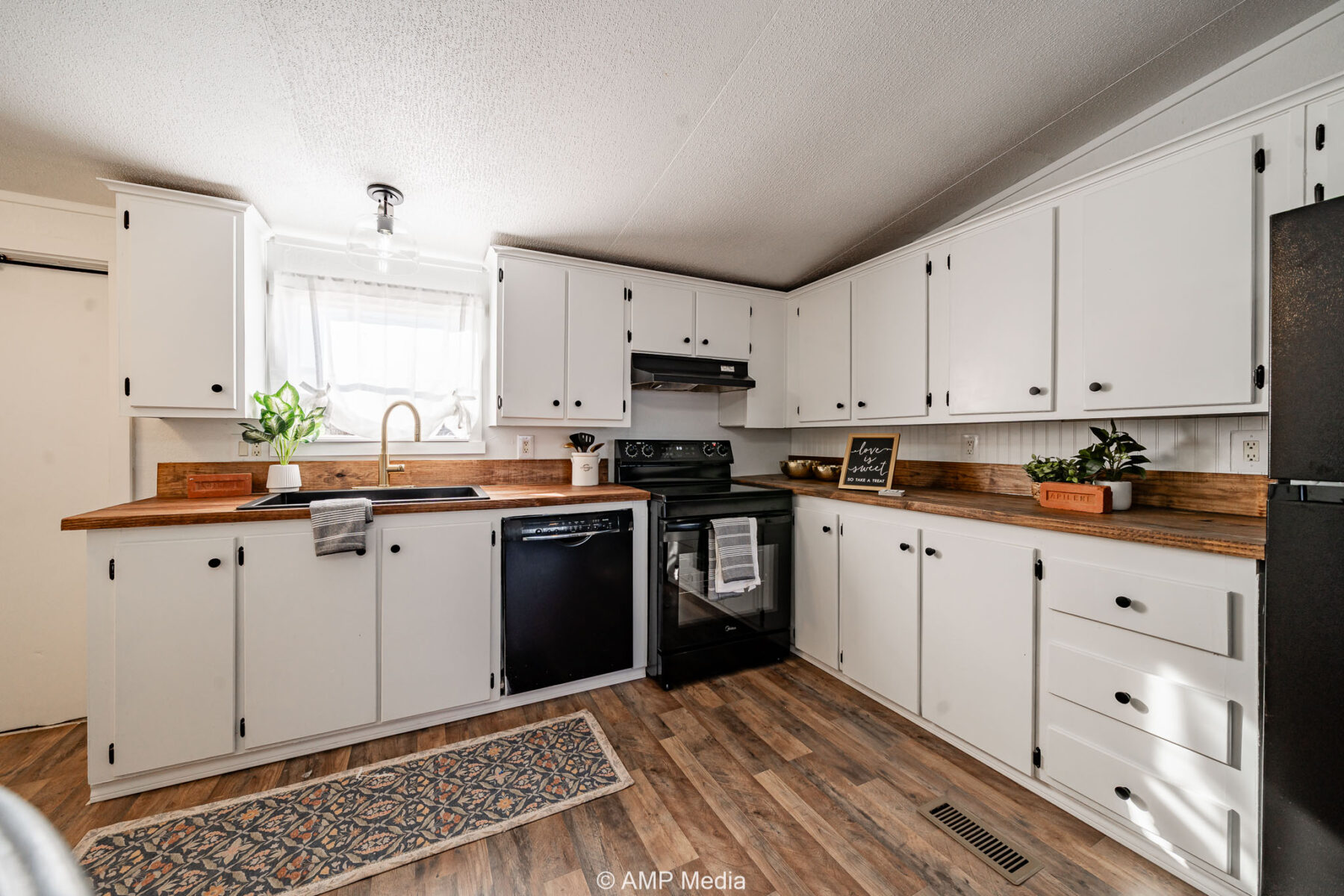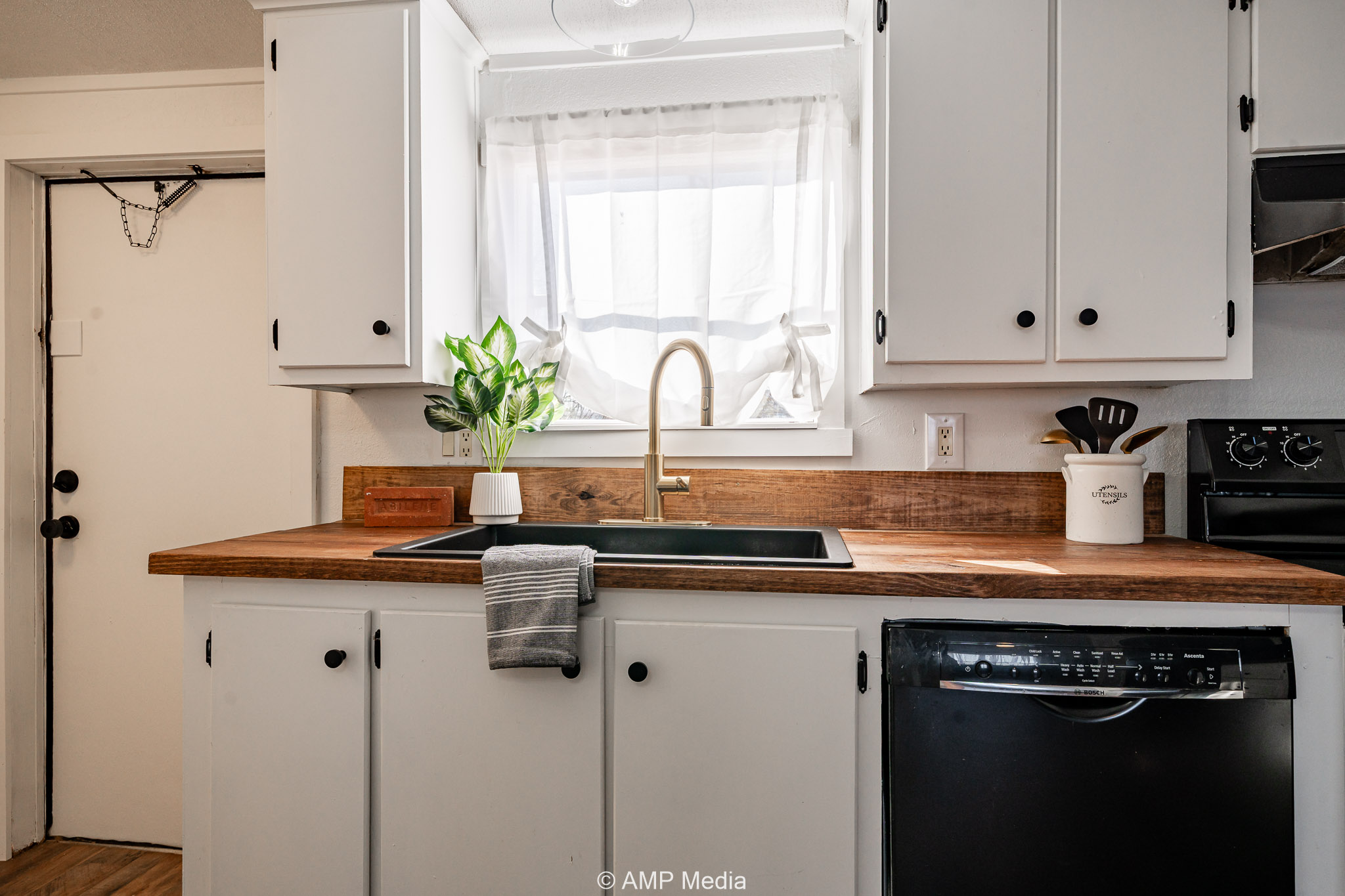 Inside, the home offers an open layout with new flooring throughout, a bright kitchen with butcher block countertops, and updated fixtures. The primary suite features a private vanity area, and both bathrooms have been tastefully remodeled.