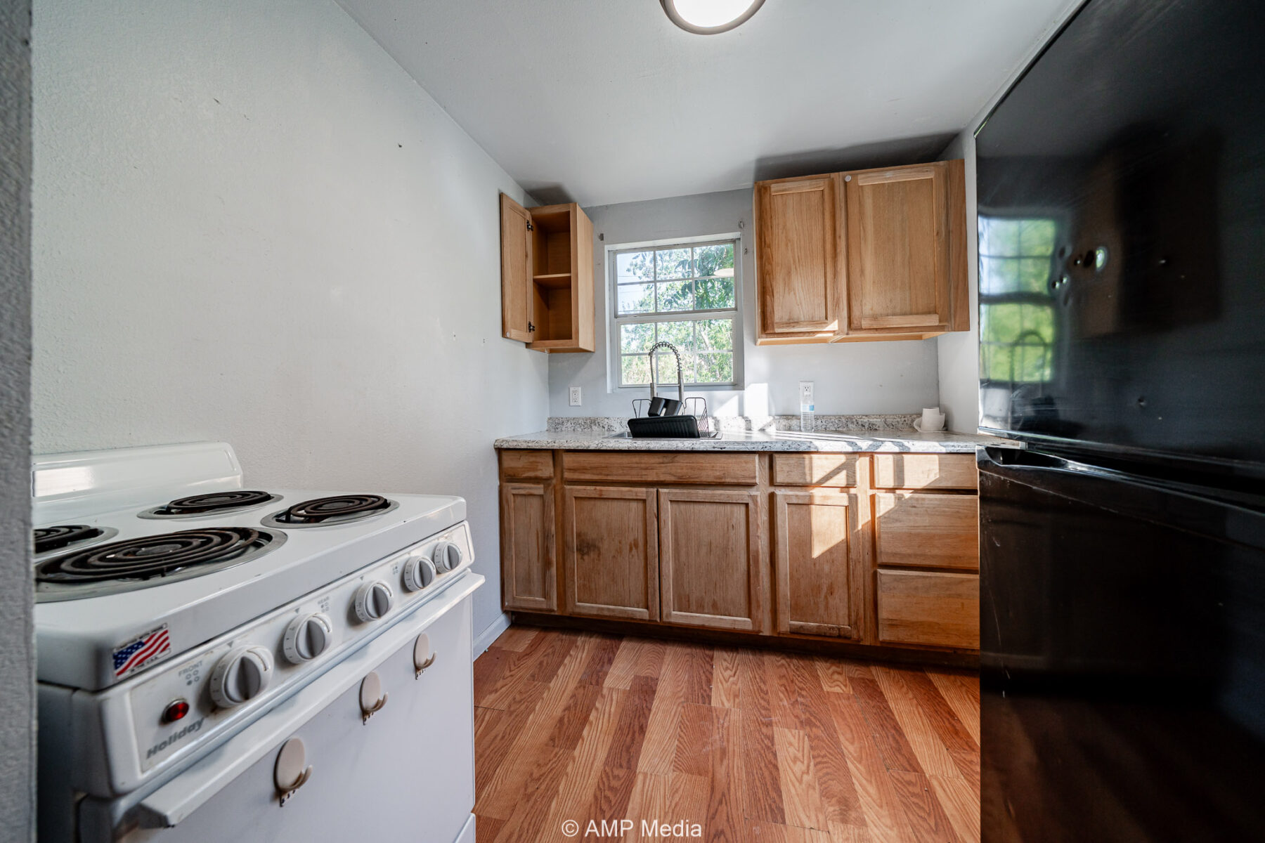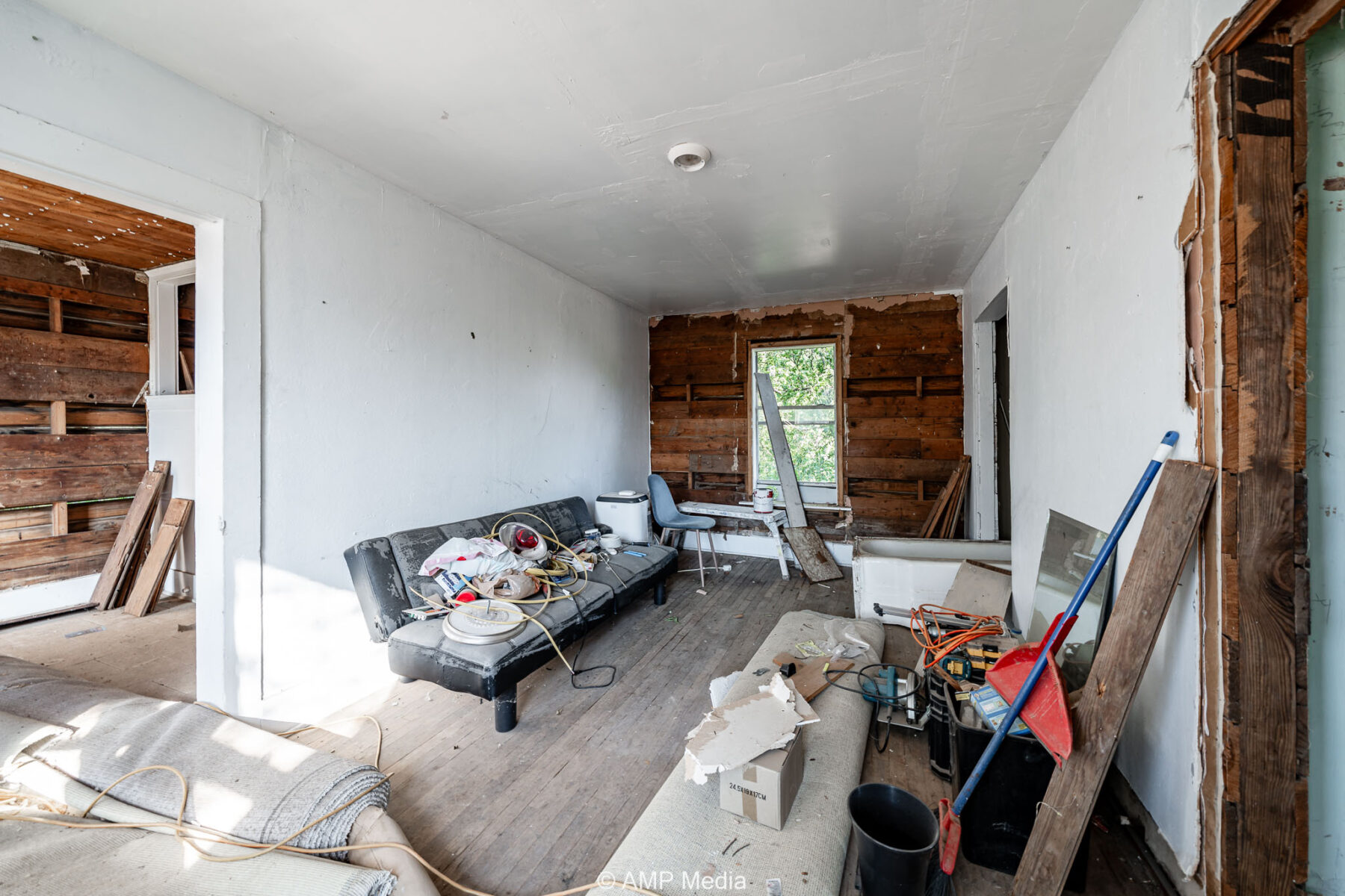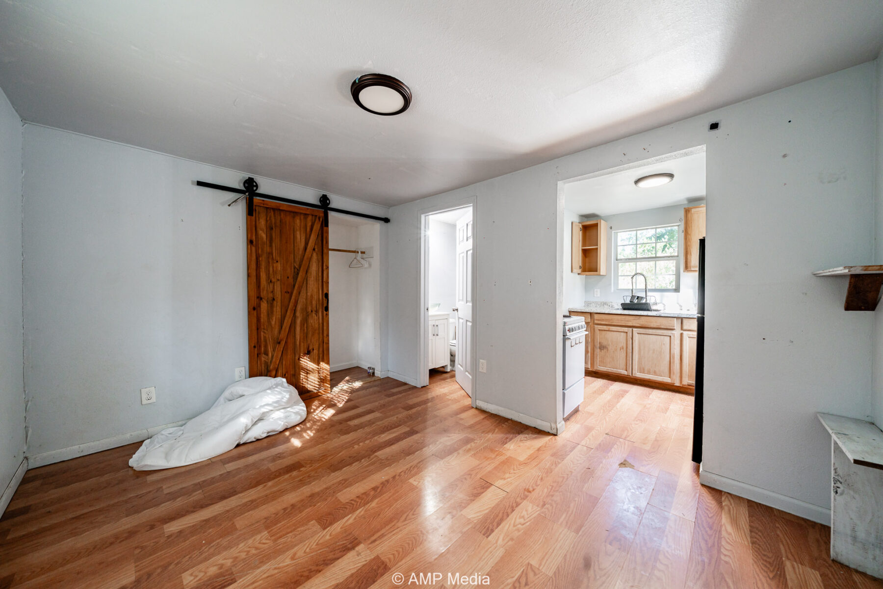 A single family dwelling on the front that needs a rebuild, and a triplex unit in the back. The bottom units have been rented, and the top unit needs to be finished before it is ready to rent. This is a good opportunity for an investor to generate income.