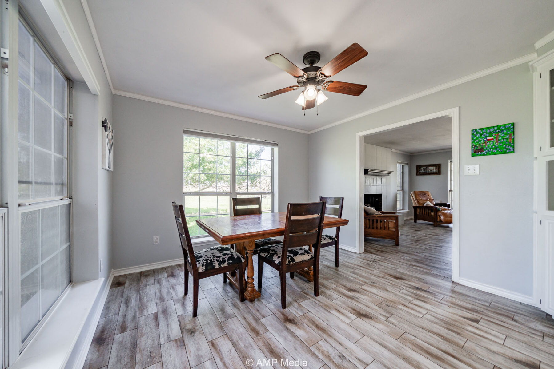 Experience the best of country living in this charming 4-bedroom home, perfectly situated on 9.94 peaceful acres! This property blends classic farmhouse charm with stylish modern updates and neutral finishes throughout. The inviting curb appeal features a full-length front porch, dormer windows, and timeless architectural details that welcome you home. Step inside to a spacious and thoughtfully designed floorplan ideal for both everyday living and entertaining. The updated kitchen boasts granite countertops, plenty of storage and a large walk-in pantry. The large living room boasts a cozy fireplace creating the perfect gathering space. A well-appointed mudroom with custom storage keeps life organized. A half bath is conveniently located near the mud and laundry area. The expansive primary suite includes dual closets, separate his-and-her toilet rooms, and a shared bath and shower combination, thoughtfully designed for comfort and privacy. Upstairs, you’ll find two generously sized bedrooms and a beautifully updated bathroom with modern finishes. The third upstairs bedroom has a half bath ensuite, perfect for guest! Outdoors, the possibilities are endless. A 30 x 80 barn offers approximately 1,200 sq ft of open storage, a 986 sq ft enclosed shop, plus a 213 sq ft office with its own toilet area, ideal for home-based business, hobbies, or equipment storage. There’s also a large RV shed that doubles as a versatile entertaining area. The acreage is fenced and cross-fenced, perfect for livestock and includes a water well, chicken coop, loafing shed, and working pens. Whether you’re envisioning a hobby farm, 4-H projects, horses, or simply room to roam, this land is ready for it all. Discover the peaceful lifestyle you’ve been dreaming of beautiful countryside, modern comforts, and room to grow. This is Texas living at its finest!