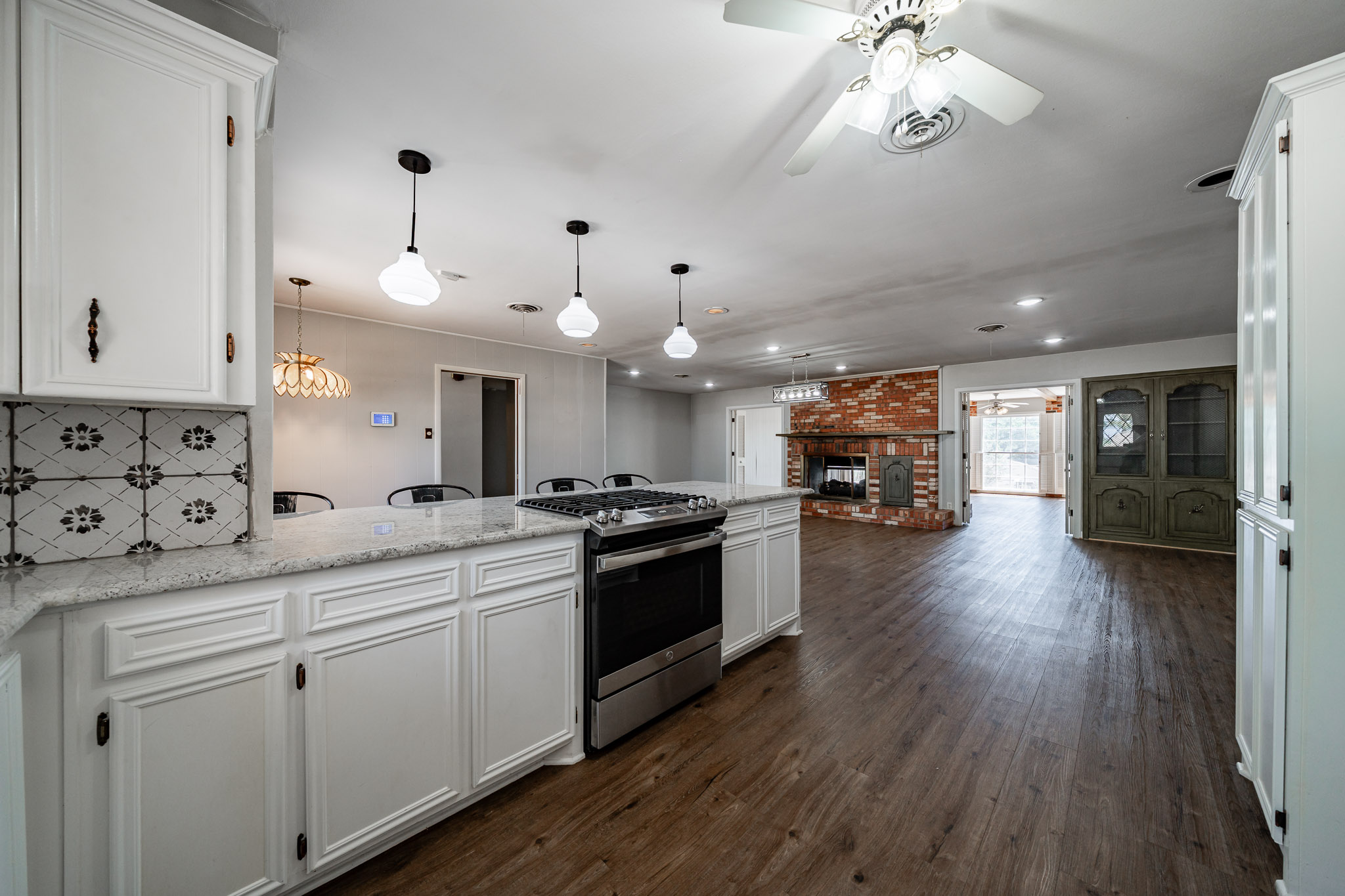 This beautiful home offers an open concept that is perfect for family connection and hosting. The wide open spaces of the living and dining areas are connected with a double-sided gas fireplace. This serves as the true centerpiece. Perfect for gathering around during the holidays. This is all brought together with a beautifully updated kitchen. It is the perfect setup for hosting and entertaining. The open concept and granite countertops provide ample space to prepare meals while staying engaged with your guests or family.