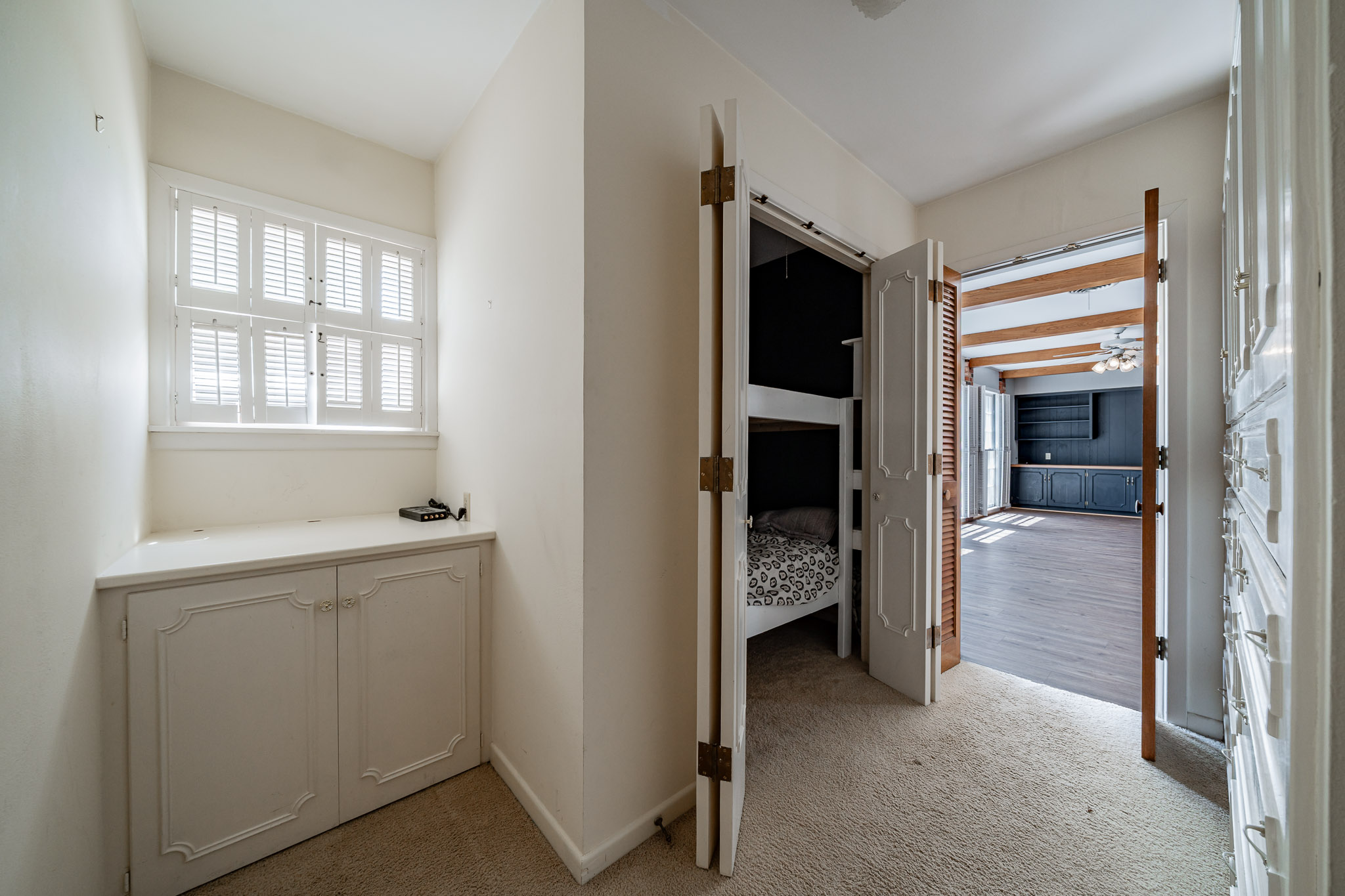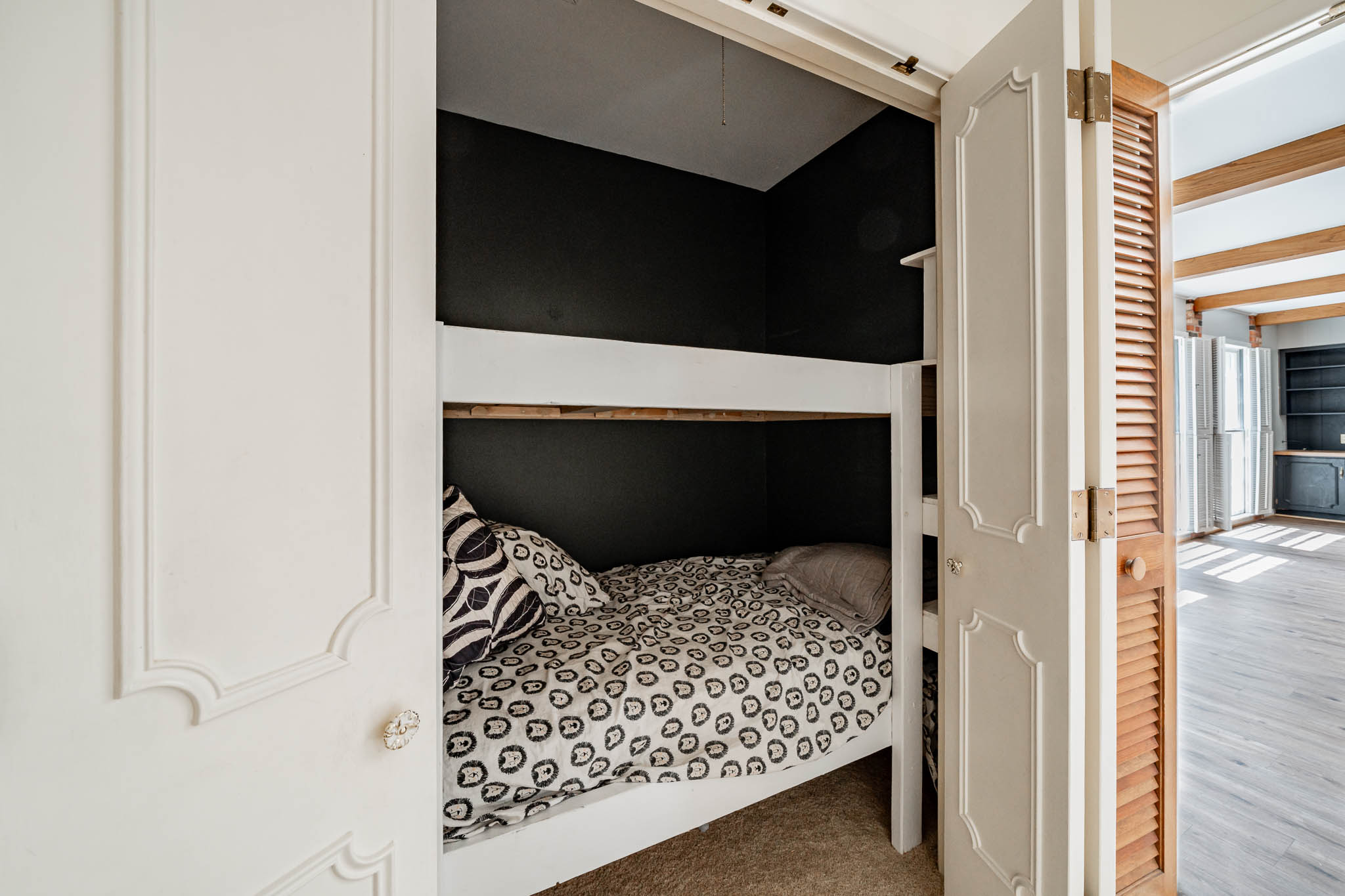 Storage throughout the home is exceptional. The primary bedroom features a massive walk-in closet. Just off the bedroom, there is a large closet that has been converted to a cozy bunk room. Ready for kids to create their own memories.
