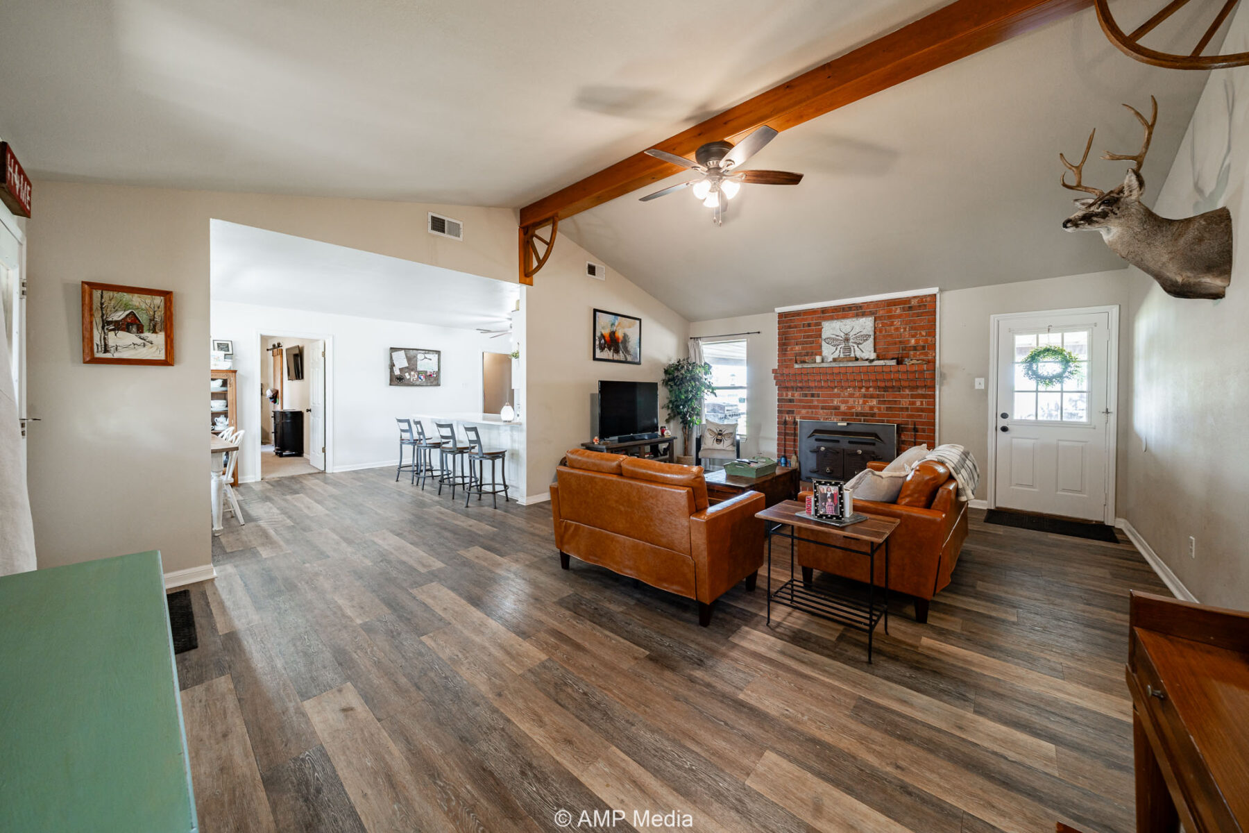 This beautiful updated home sits on 5± acres surrounded by mature trees that offer shade, privacy, and a true sense of country. The exterior offers a fresh coat of paint on the trim, with large porches on both the front and back for comfortable outdoor living spaces. The inside has been completely renovated with new floors, new countertops, and fresh paint throughout.