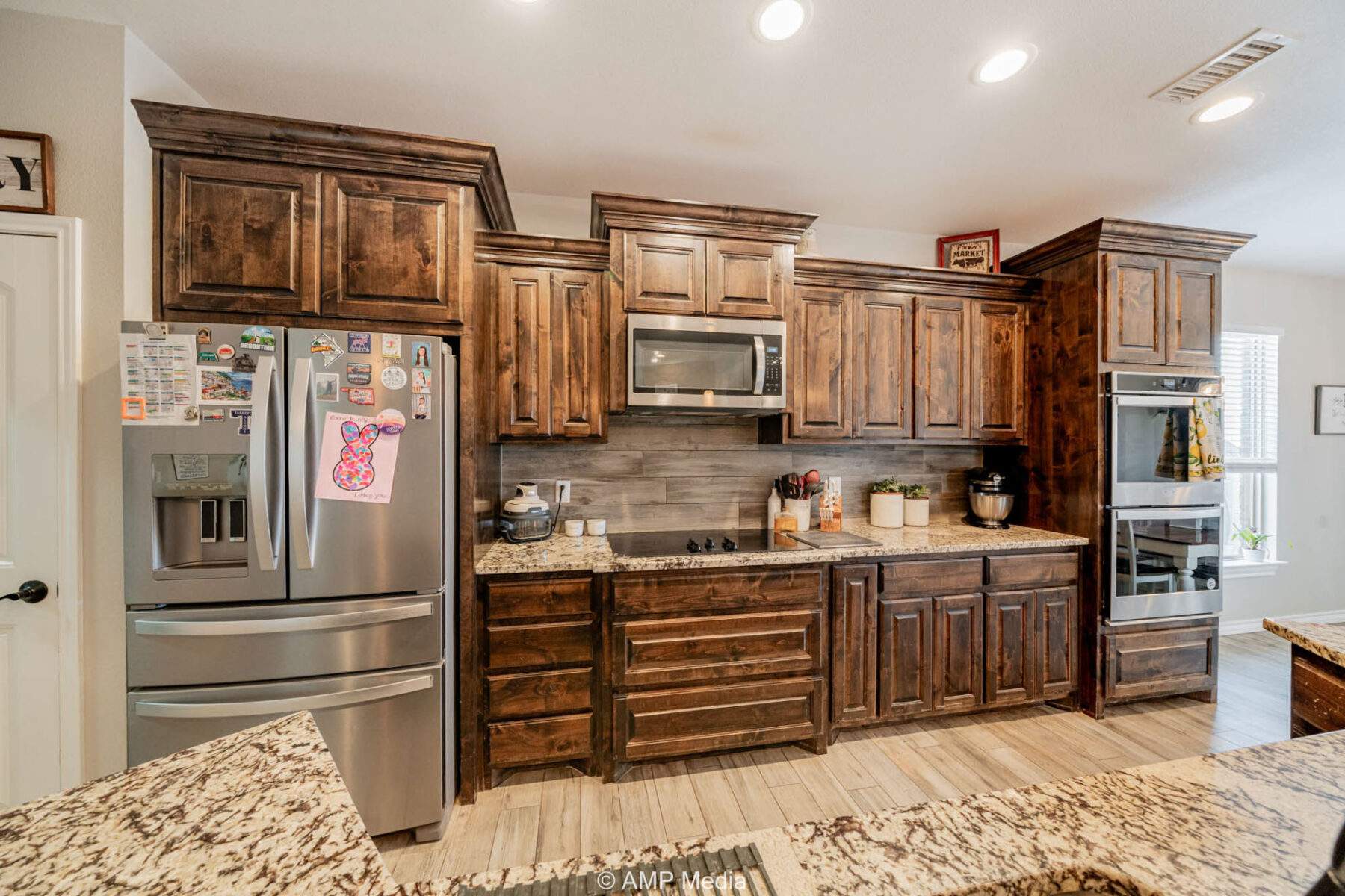 This beautiful Franklin Construction home features 4 spacious bedrooms, 2 modern bathrooms, and a 2-car garage, blending elegance with comfort. Inside, you’ll find high ceilings, custom Alder cabinets, and luxurious granite throughout, complemented by Oil Rubbed Bronze fixtures. The property also includes a new workshop/horse barn, perfect for hobbyists or equestrian lovers. Plus, two 2500-gallon storage tanks are included for house use, adding convenience and efficiency. Enjoy your private oasis surrounded by 150 linear feet of privacy fencing. Don’t miss this exceptional opportunity!