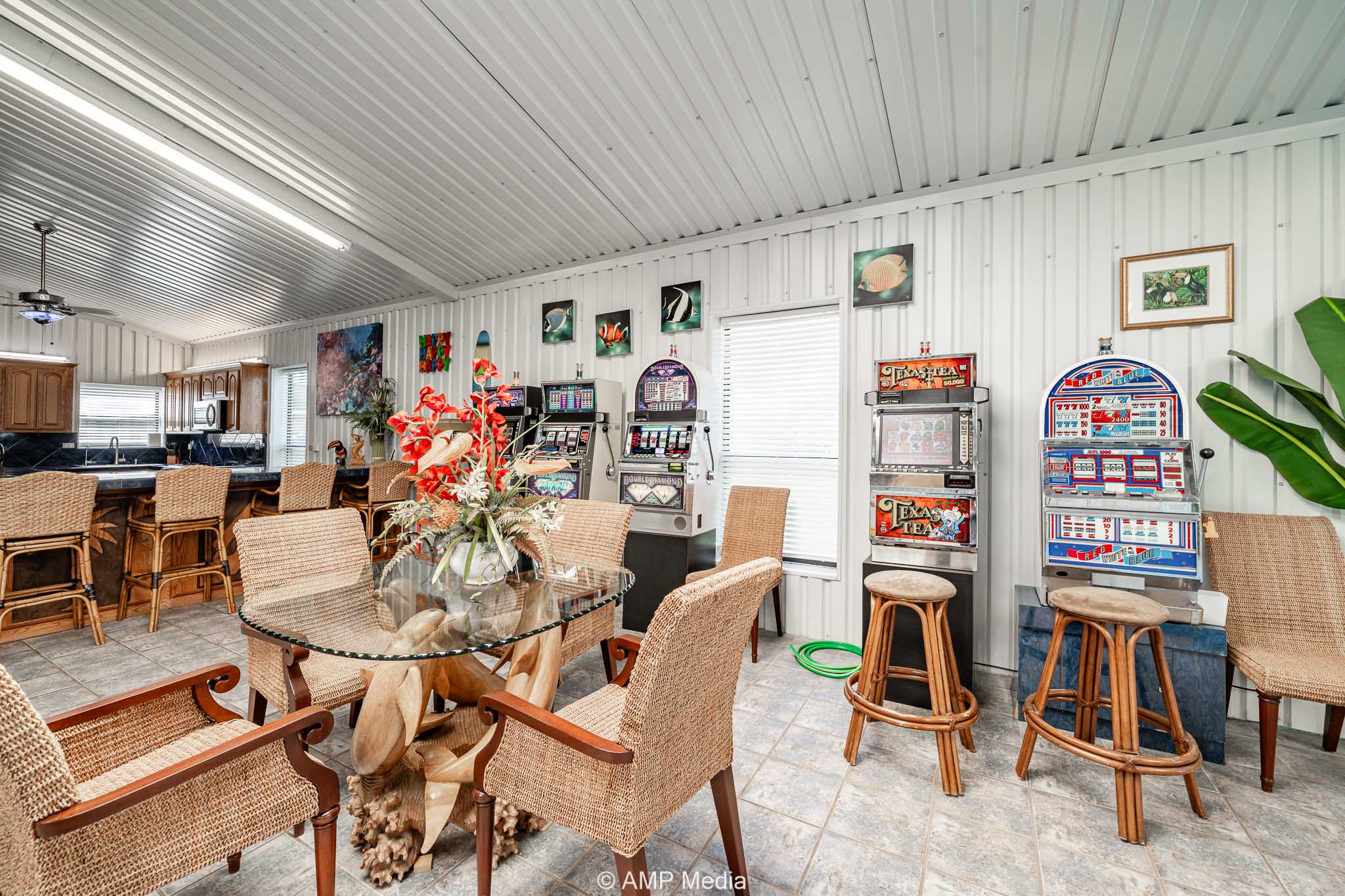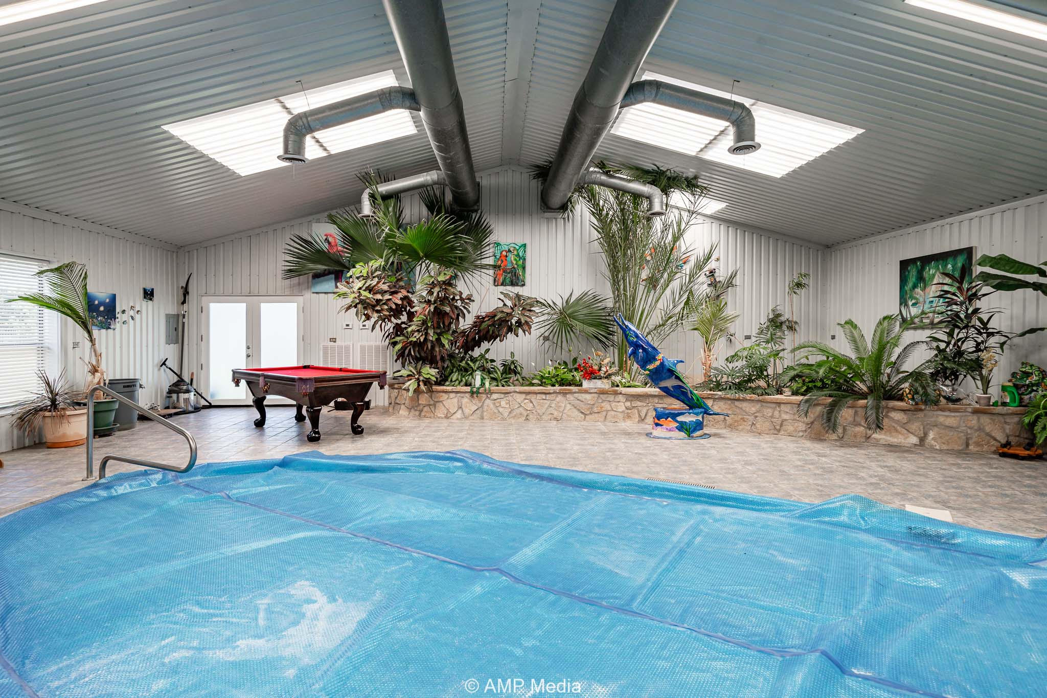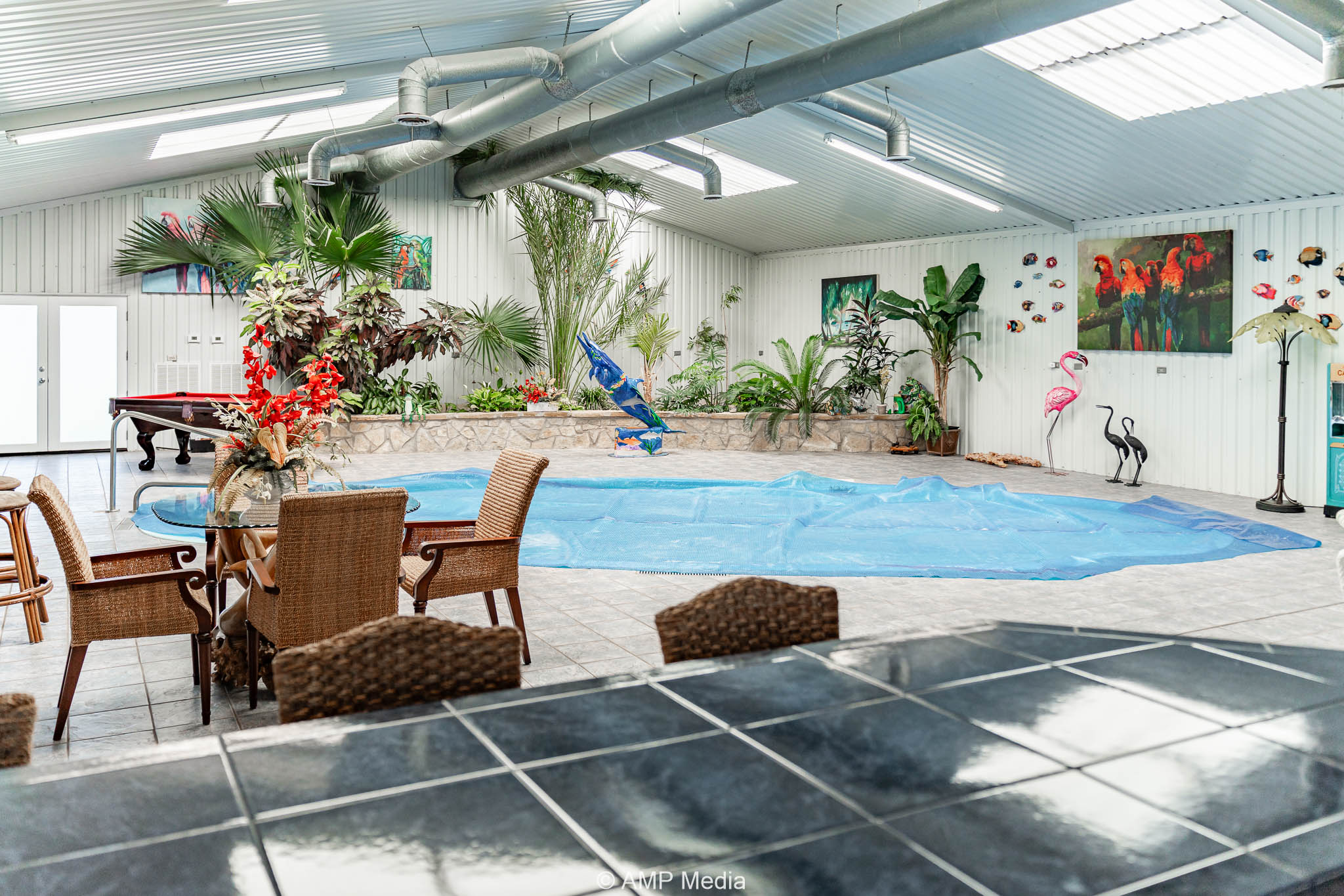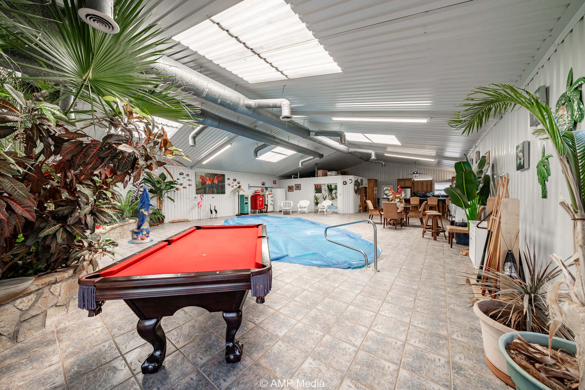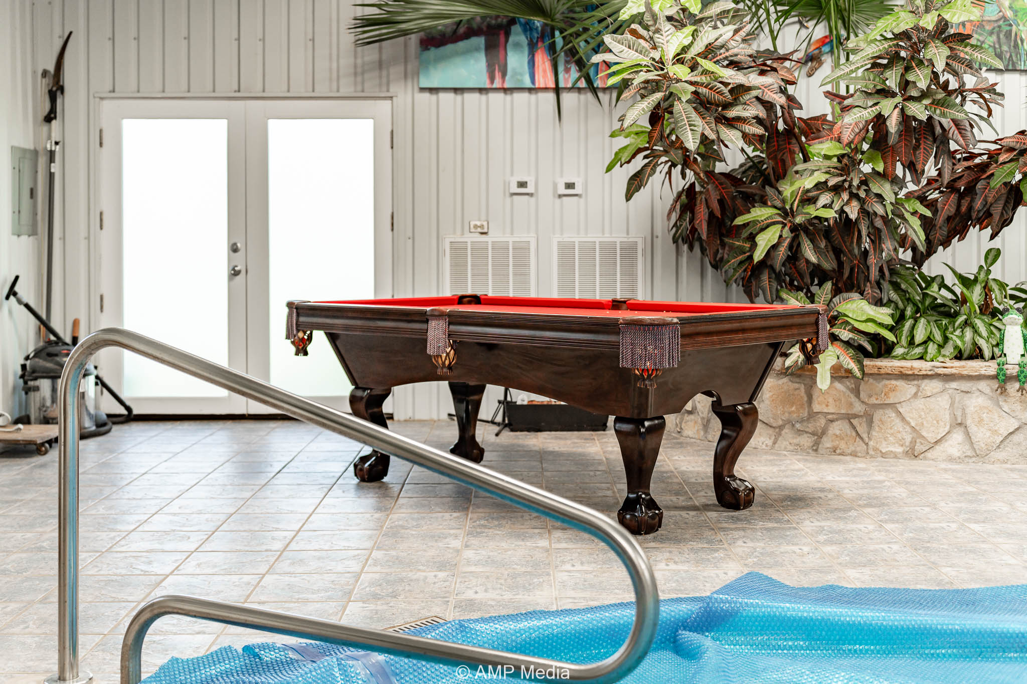 Just steps from the back door is an impressive pool house with an atrium and an in-ground heated pool. It includes guest quarters with a full kitchen featuring a large island ideal for entertaining, a game room complete with a pool table, and two central heating and cooling units for comfortable year-round use.