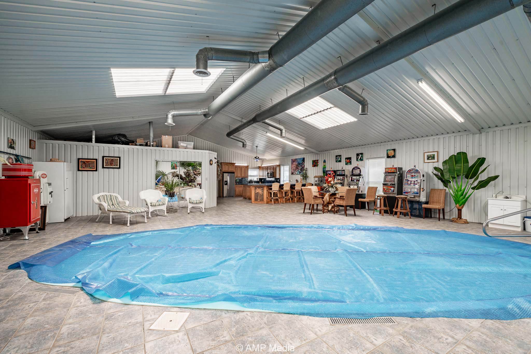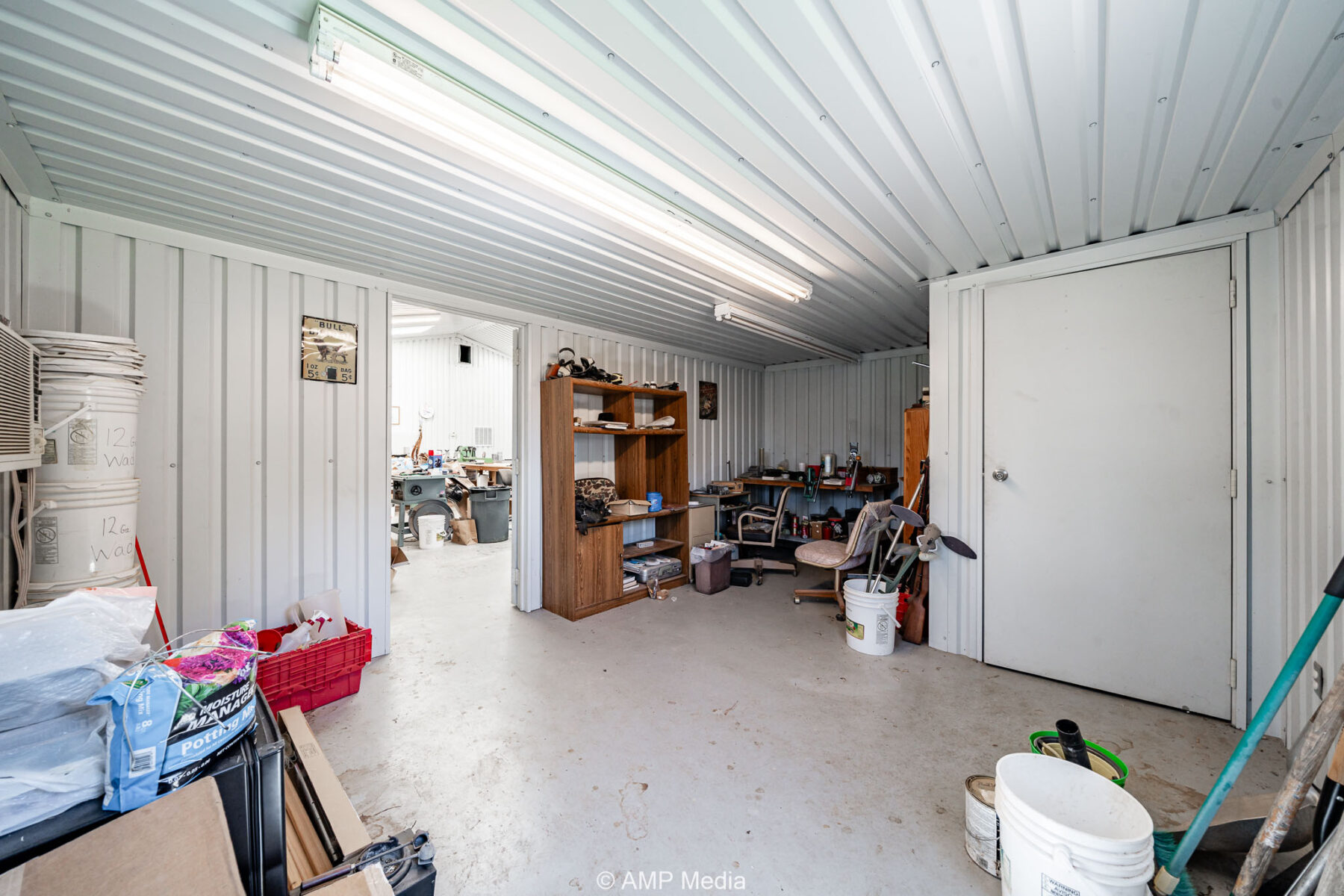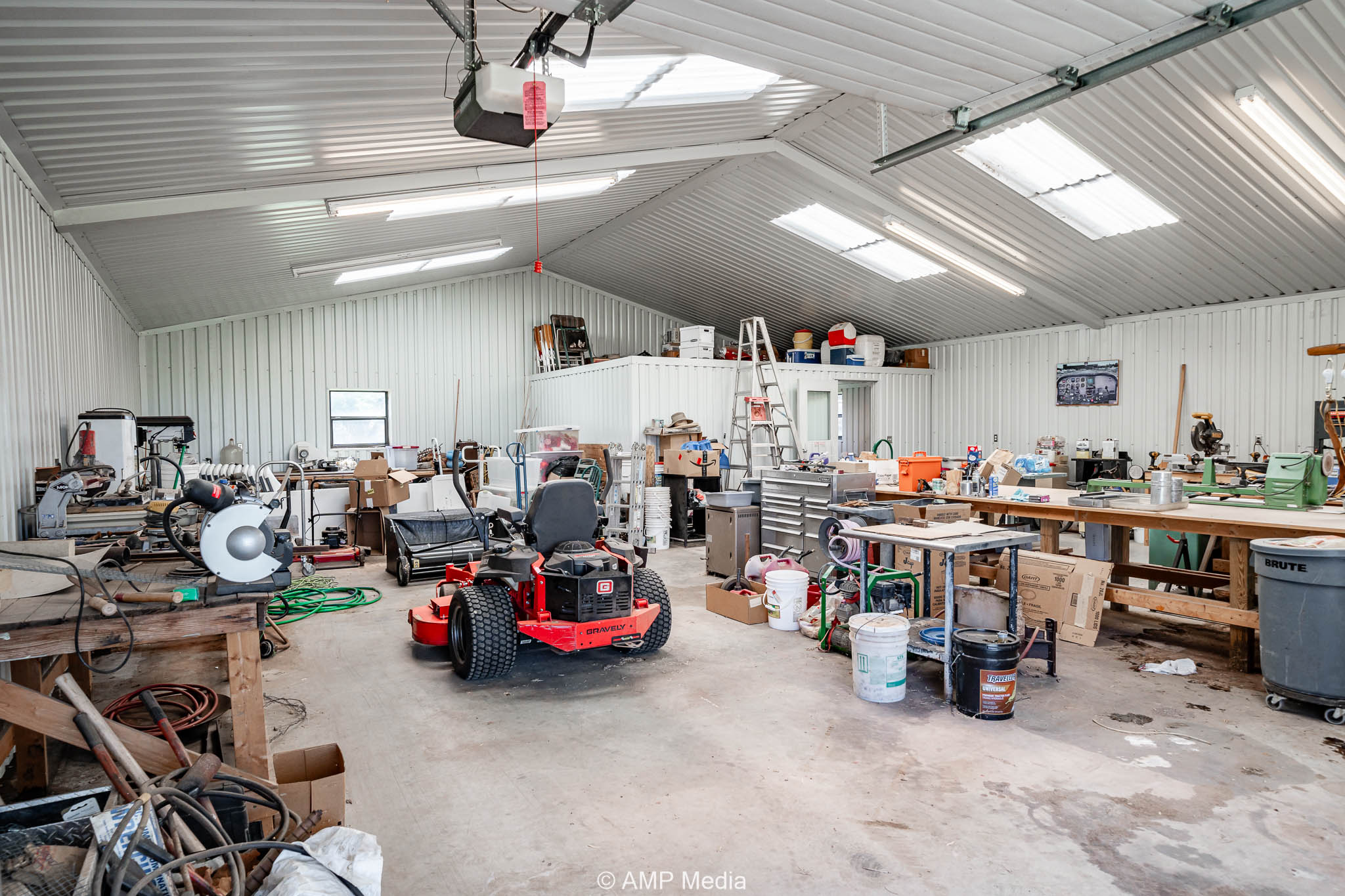 The property also includes a massive heated and cooled workshop with two overhead roll-up doors, ideal for hobbies, equipment storage, or even a home-based business.