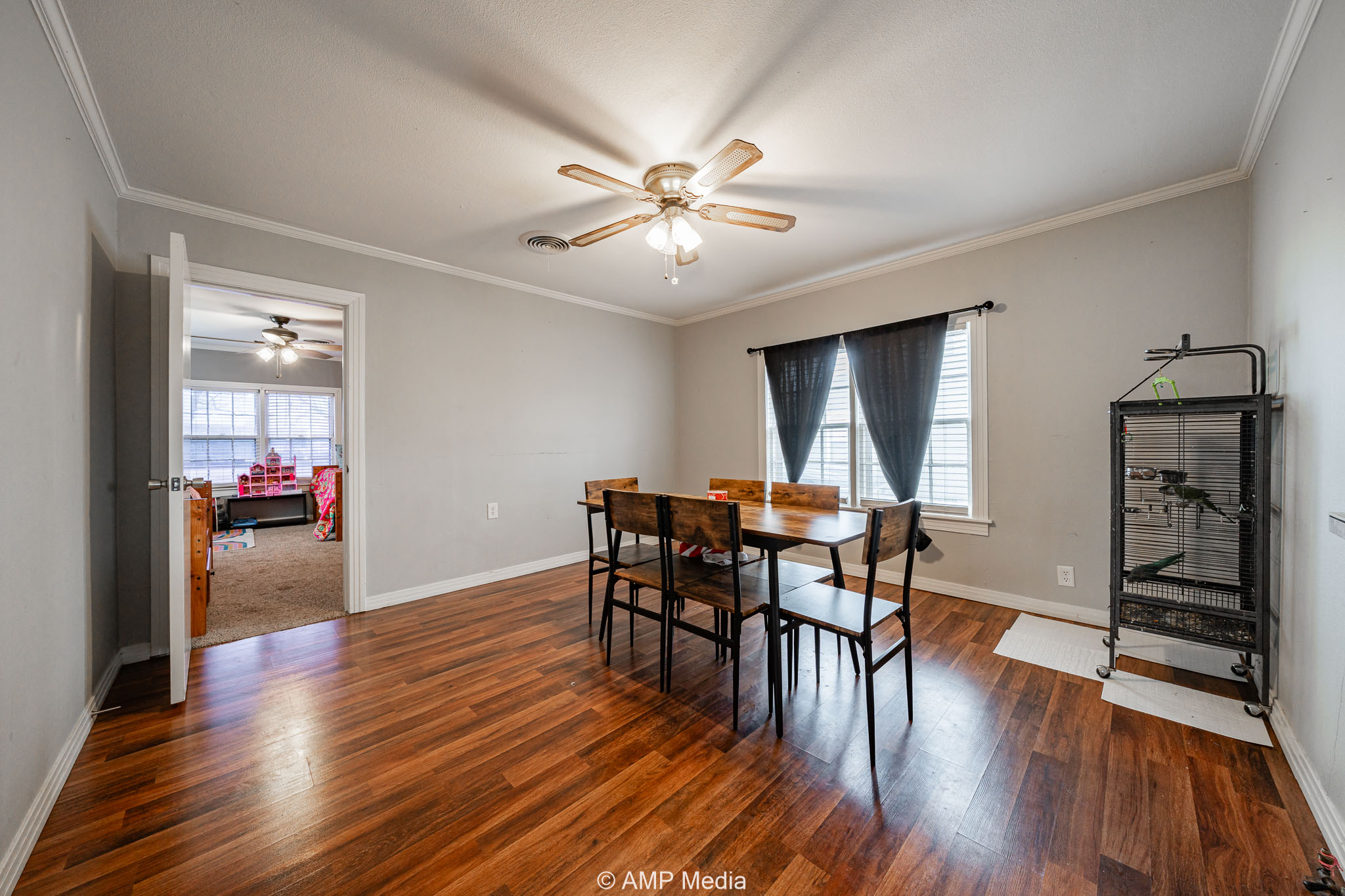 This charming three-bedroom 1940s brick home sits on a large lot and is filled with abundant natural light throughout. Recently painted, the home offers excellent curb appeal and a welcoming wraparound porch with covered front and back patios, perfect for relaxing or entertaining.