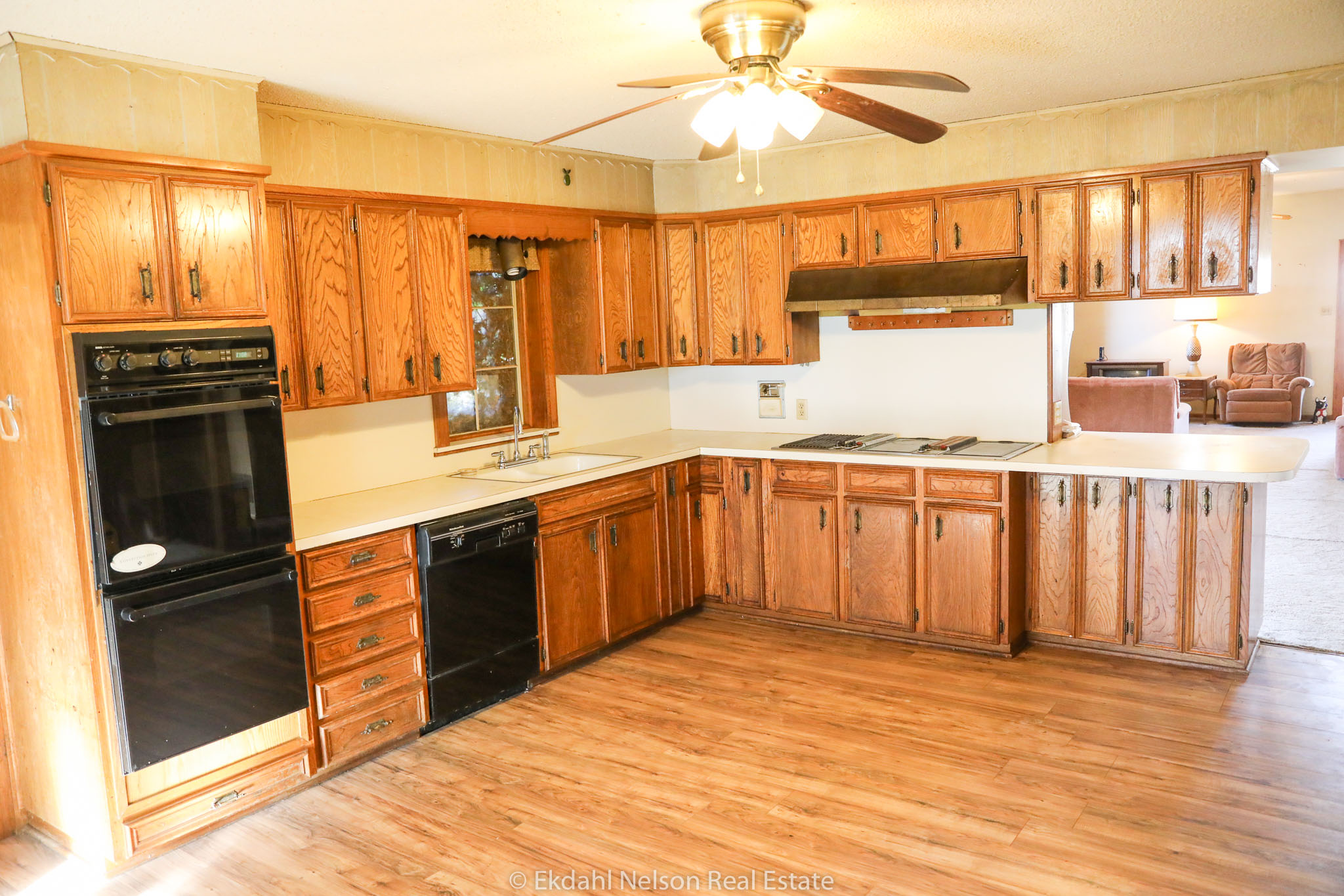 Large pecan and pine trees complement the property, and you can enjoy the view from the sunroom. The home has three bedrooms and one and a half bathrooms, for a total of 2,274± square feet, making it a perfect fit for any growing family. It has a large eat-in kitchen with a separate dining room, which opens to the living space that features a wood-burning fireplace.