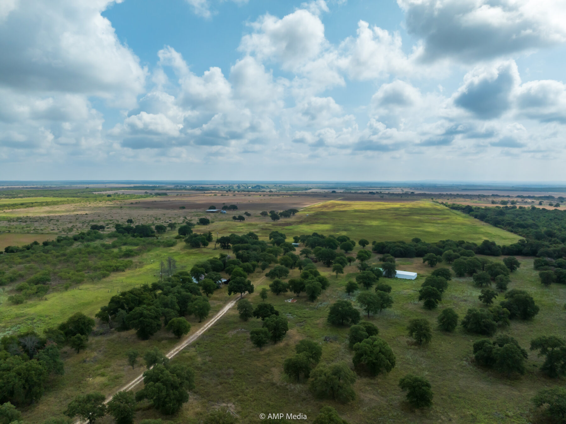The property currently features an older home situated on a slab with blueprints for a new build. There is also a former office building that could be converted into a barndominium, guest house, or additional storage. Two loafing sheds provide space for livestock or equipment. Several old water wells are located on the property (buyer and buyer’s agent to verify condition and production).