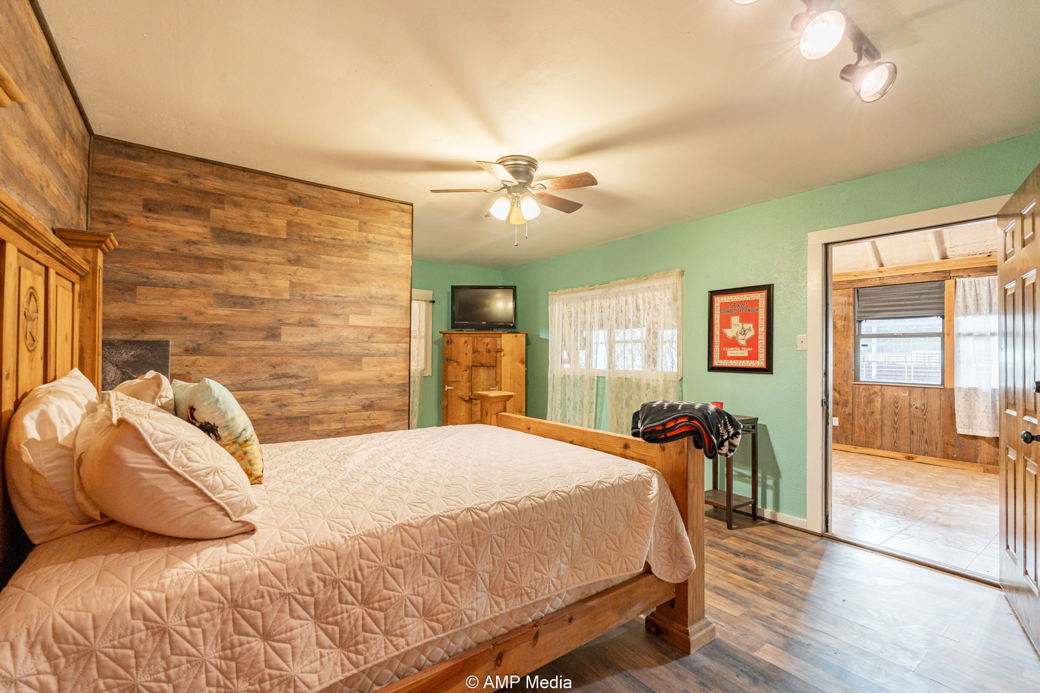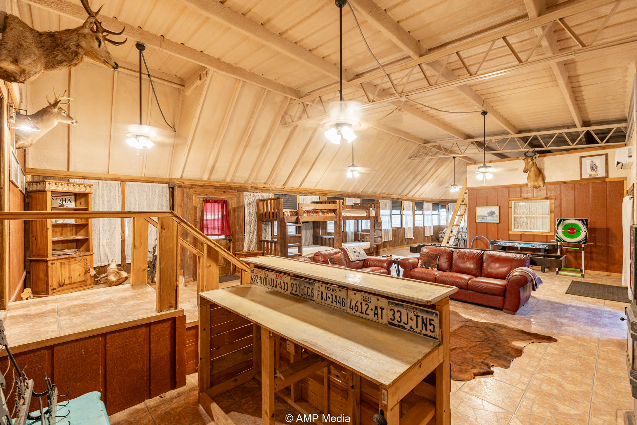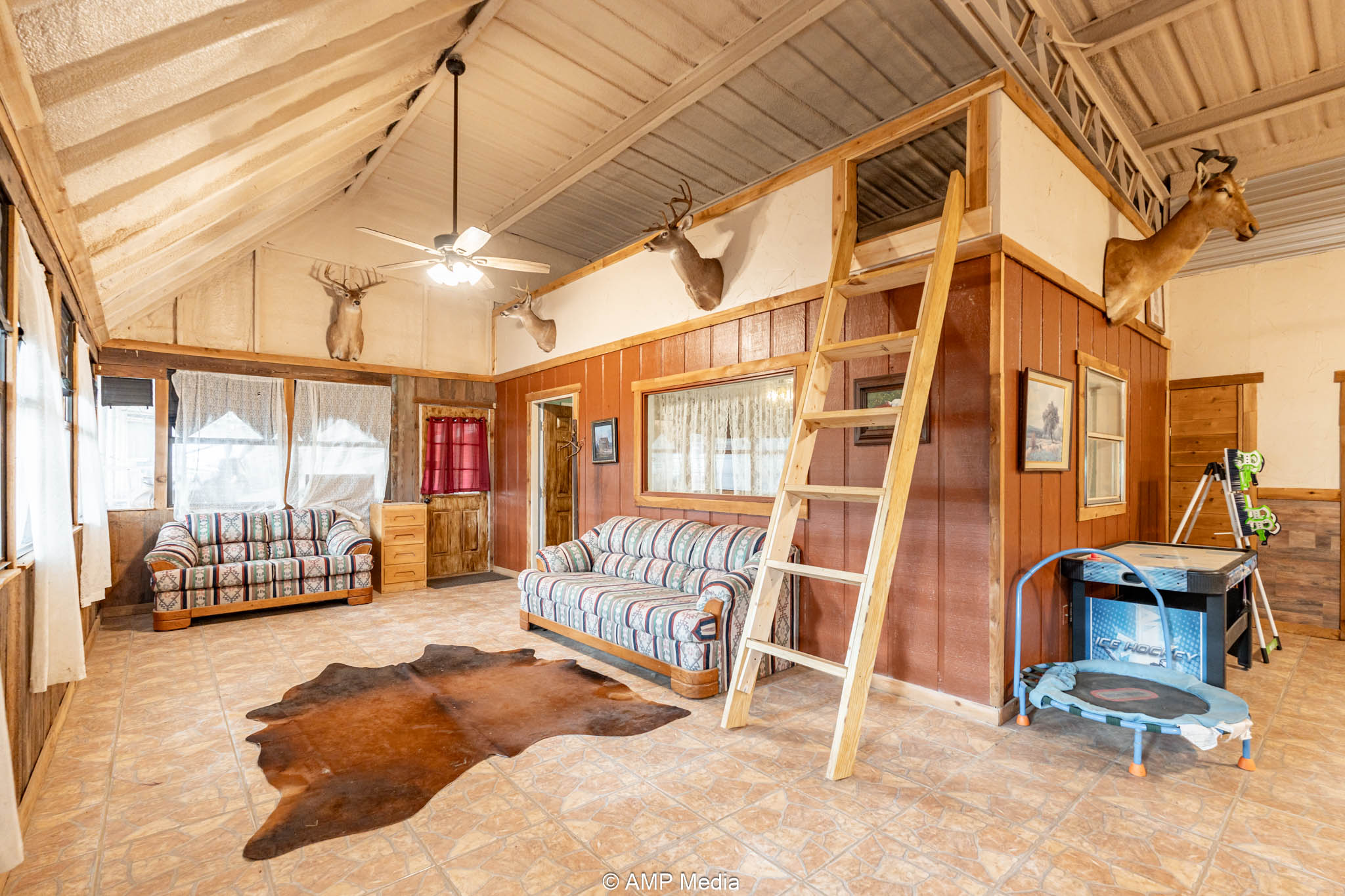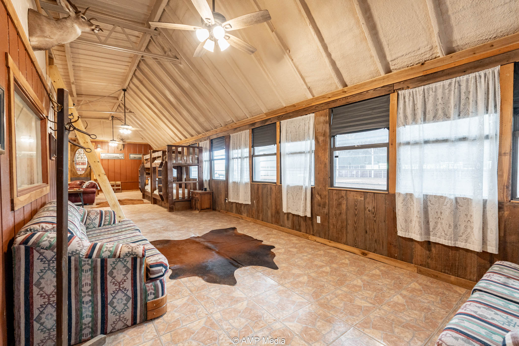 Under the same roof: the updated 2-bedroom, 3-bath apartment (built by Trevor) features a loft, large den with mini-split cooling, and central heat/air—ideal for on-site living, managers, or trainers.