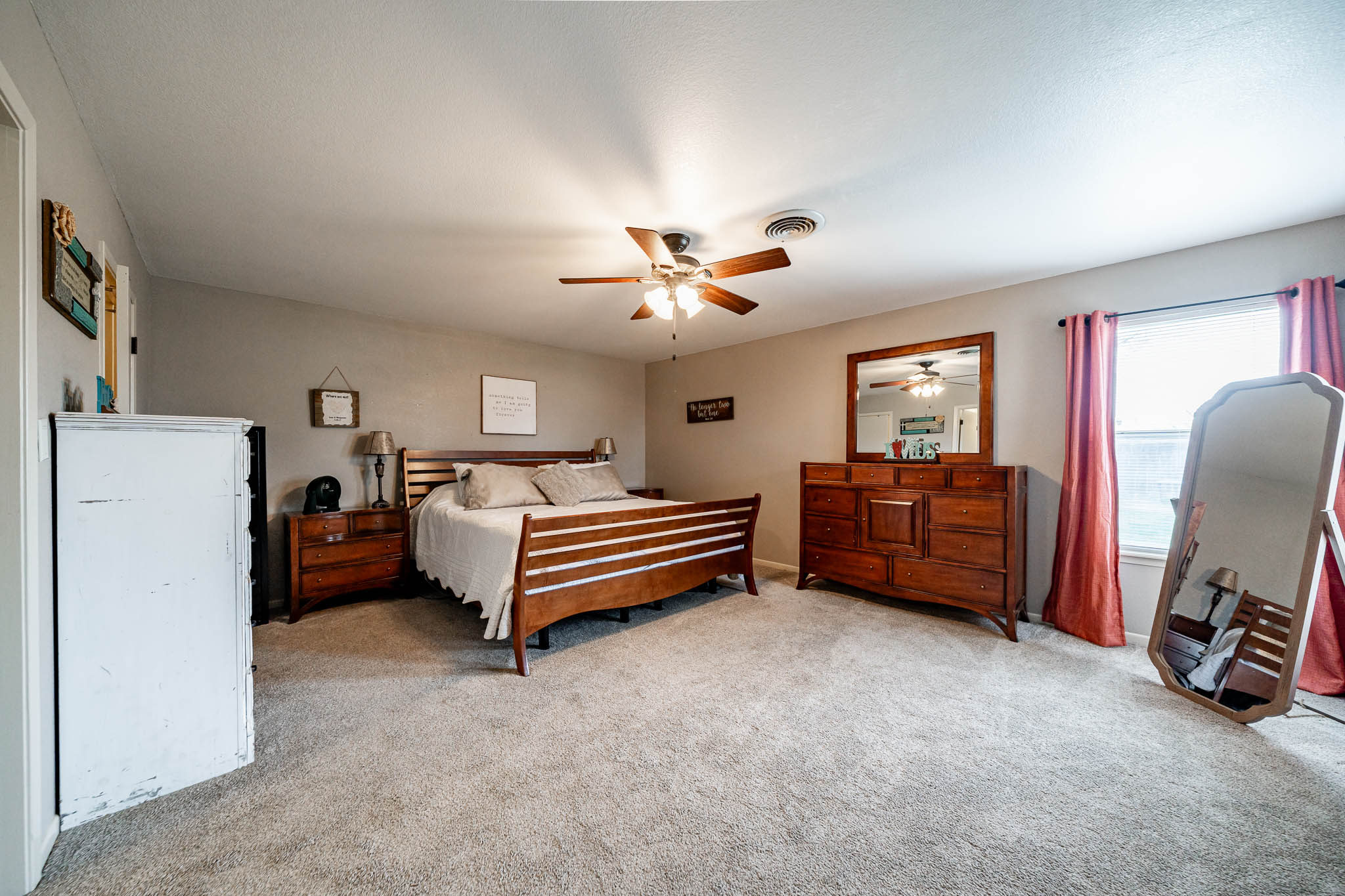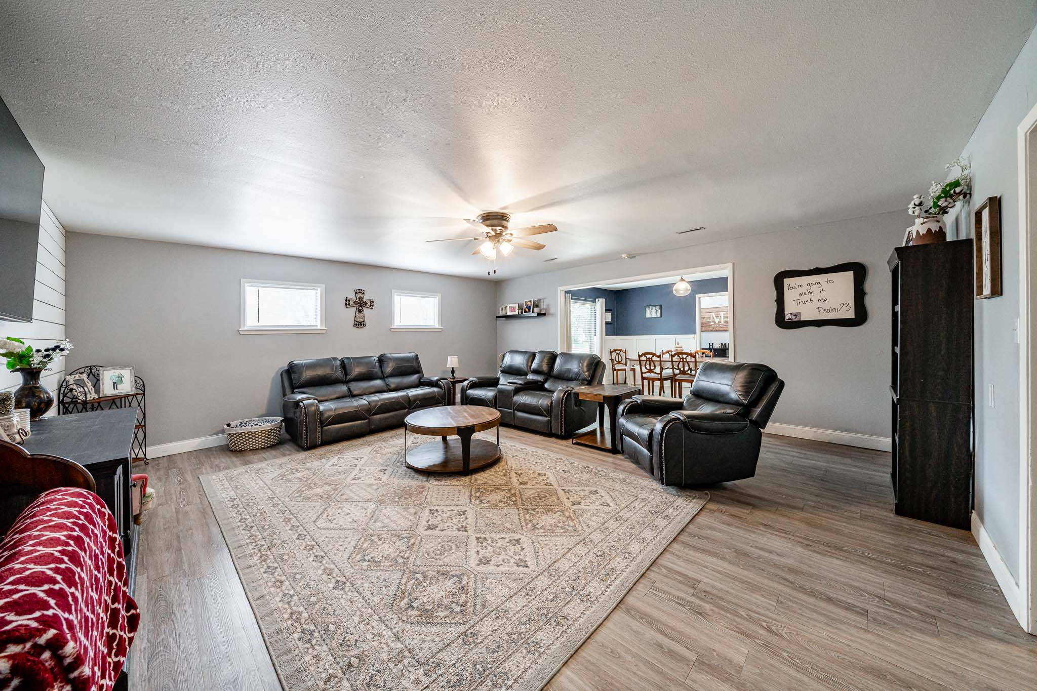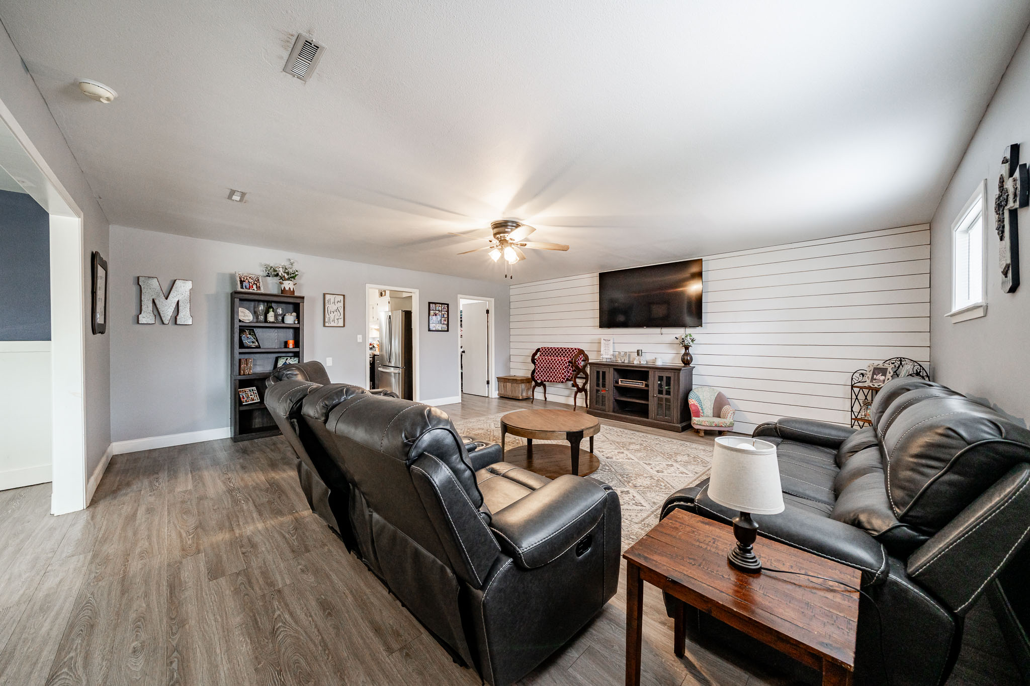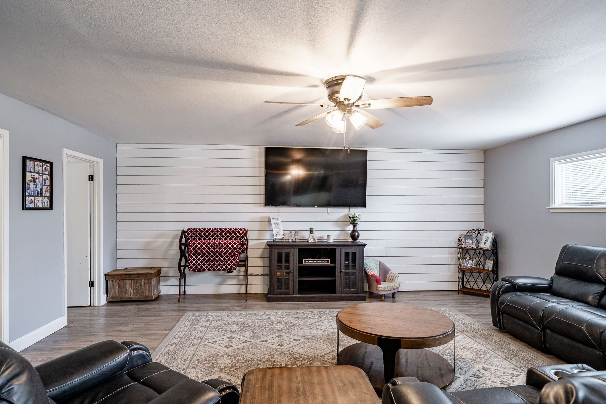 Inside, three additional bedrooms share two hallway bathrooms, while the private primary suite at the back features generous space, a walk-in closet, and an ensuite bath. This home delivers great value with all the perks of rural living near Abilene—perfect for families seeking space, entertainment, and convenience.