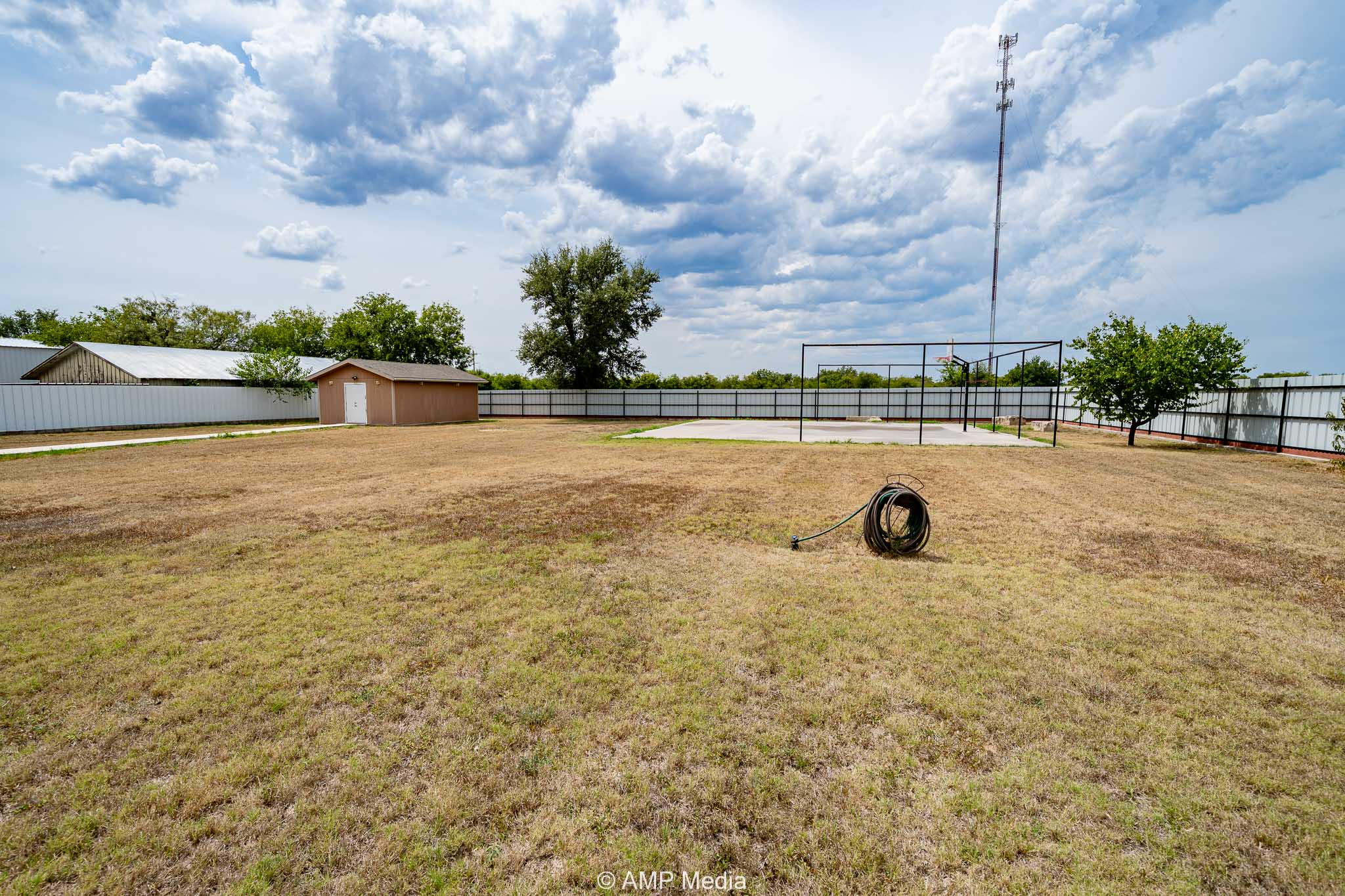 Outdoors, enjoy a spacious covered patio, metal privacy fencing with a partial cinder block wall, and a beautifully landscaped yard with two mature fruit trees and one of the largest Oak trees in Haskell County! The property also includes a basketball court and a powered workshop, plus a basement and ample built-in storage throughout.