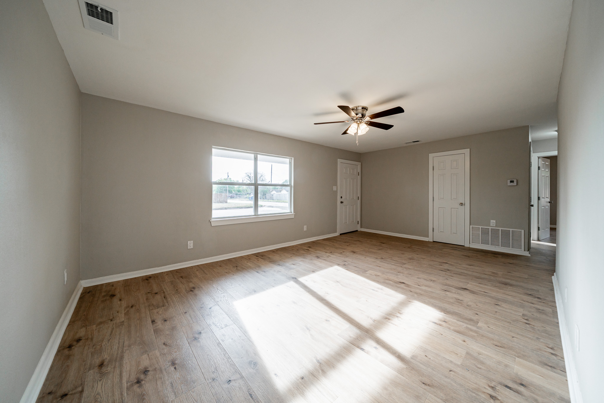Inside, you will find new laminate flooring, countertops, doors, light fixtures, ceiling fans, toilets, and a new kitchen sink and faucet, along with updated hardware. Clean, fresh, and truly move-in ready. The home also features a large utility room and a flexible bonus space that could be utilized as a fourth bedroom.