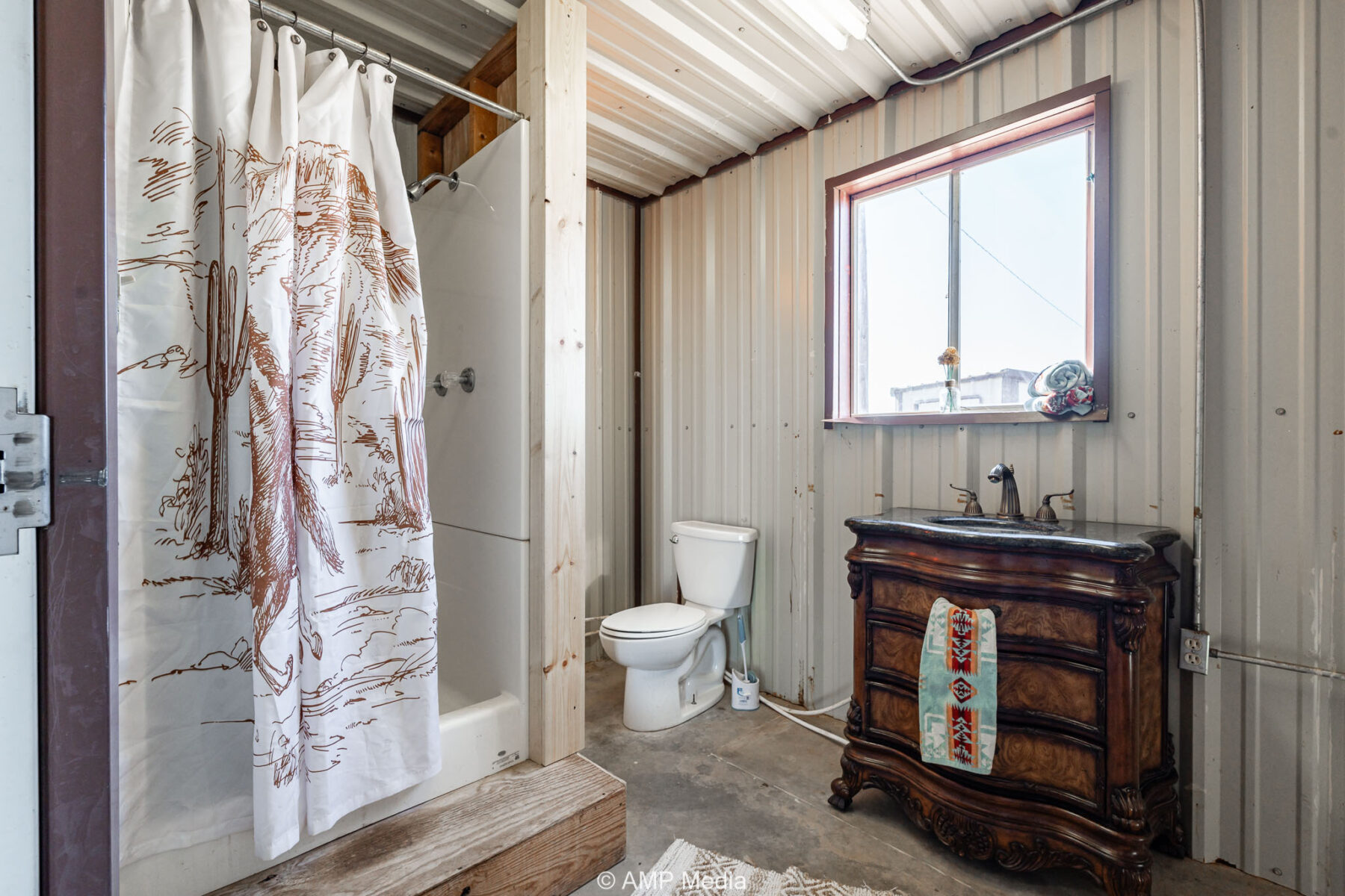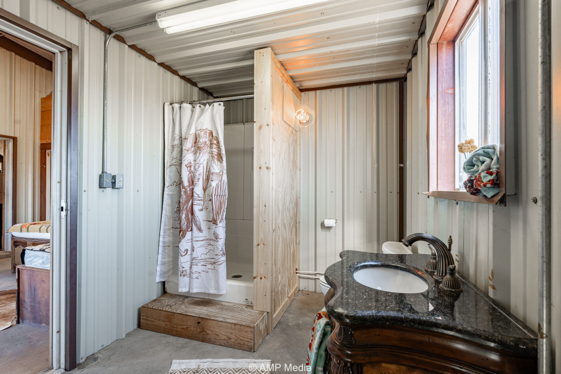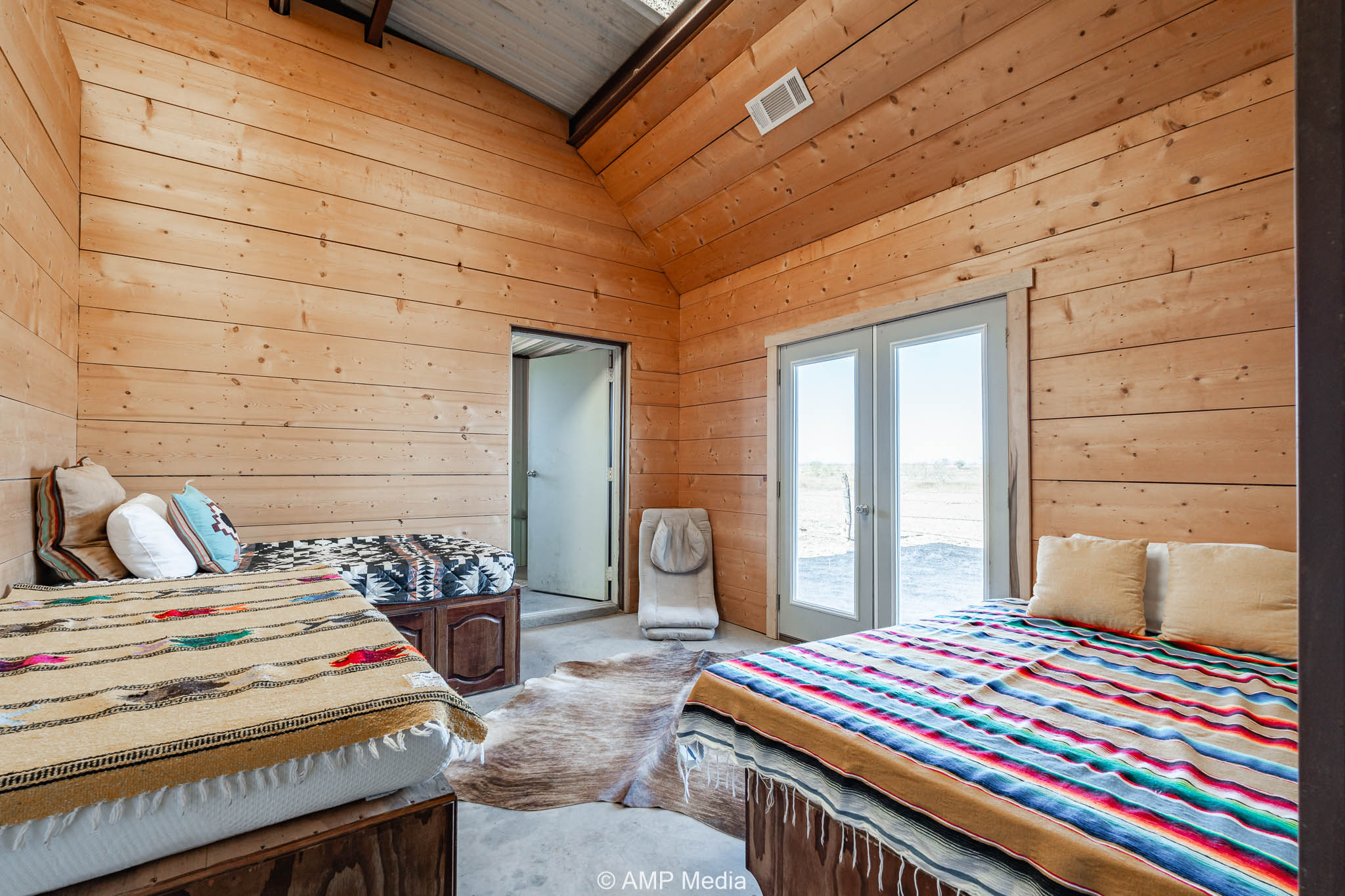 A well-appointed hunter’s cabin offers a comfortable base camp for weekend getaways or extended stays, complete with a fully equipped kitchen, bathroom, ample storage, and central heating and cooling.
