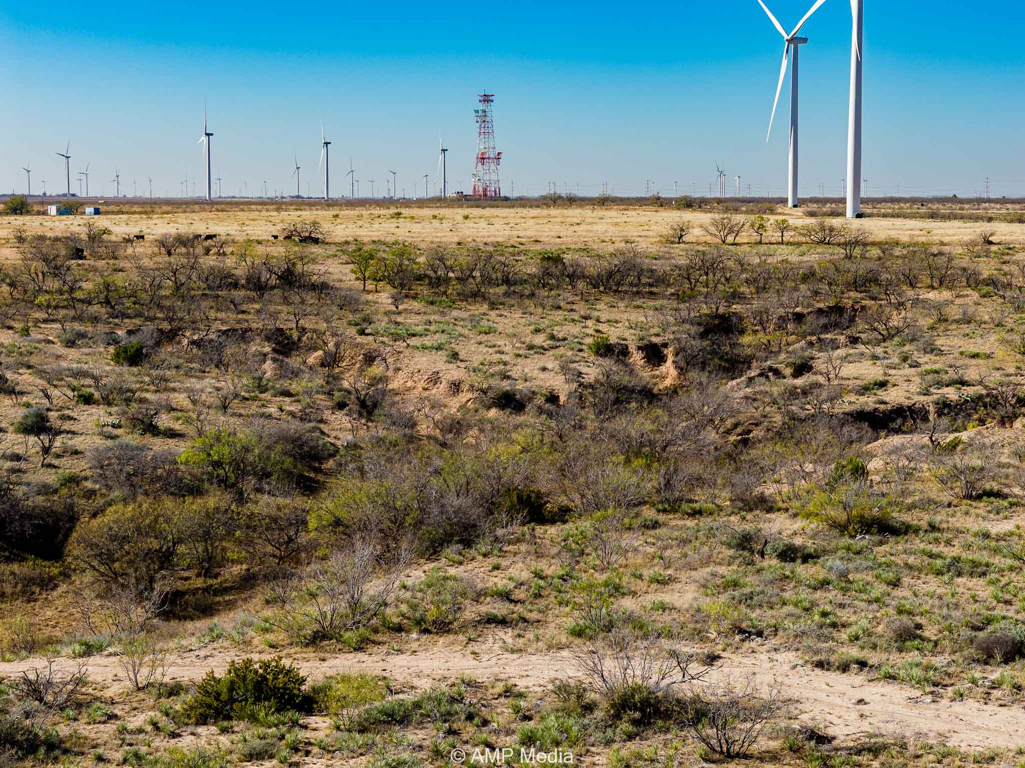 Currently leased for cattle grazing, the property carries an agricultural exemption to keep taxes low and includes a wind lease with four windmills. Rolling terrain, natural draws, and three earth tanks enhance the land, with high elevations offering sweeping panoramic views.