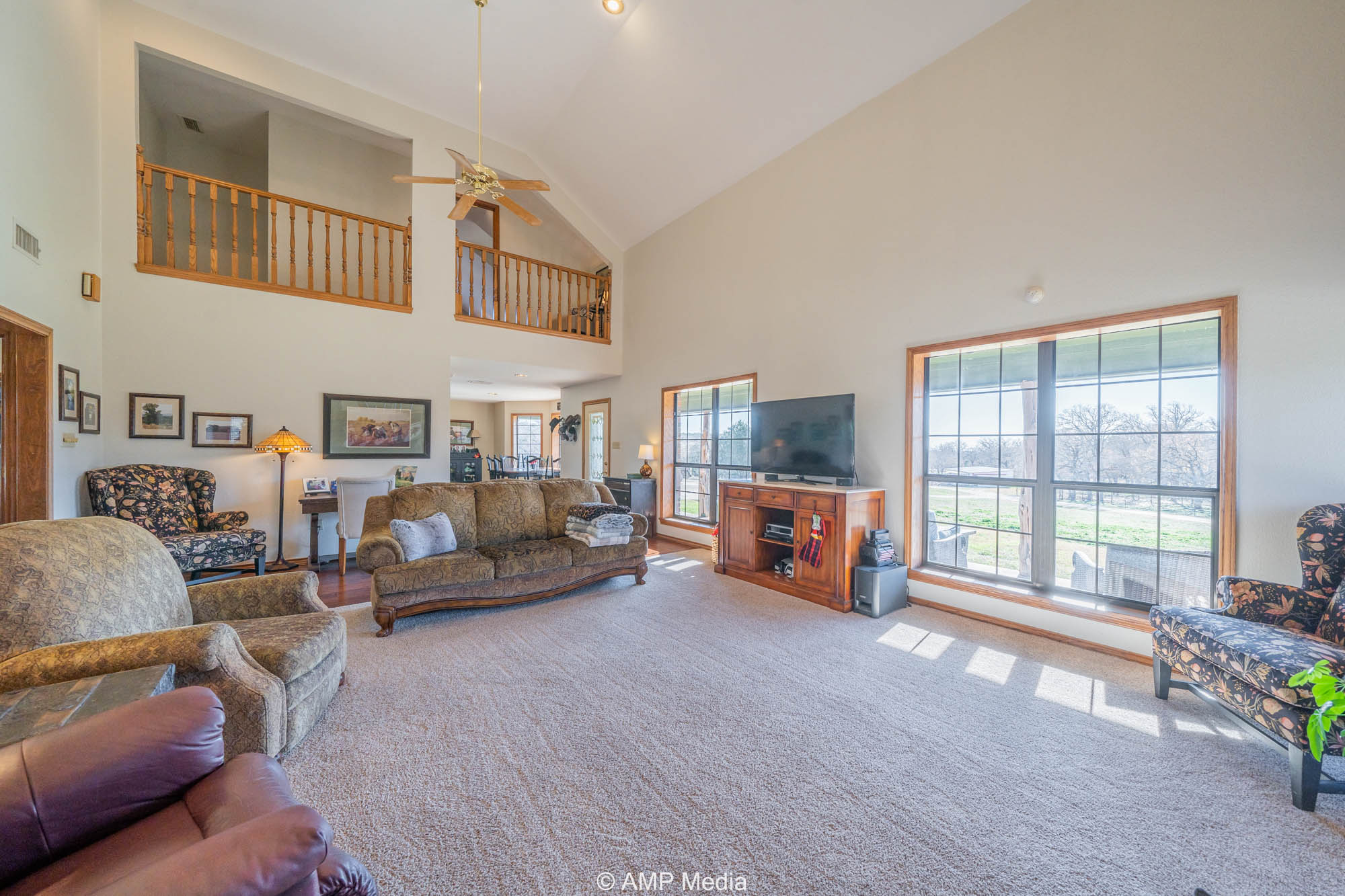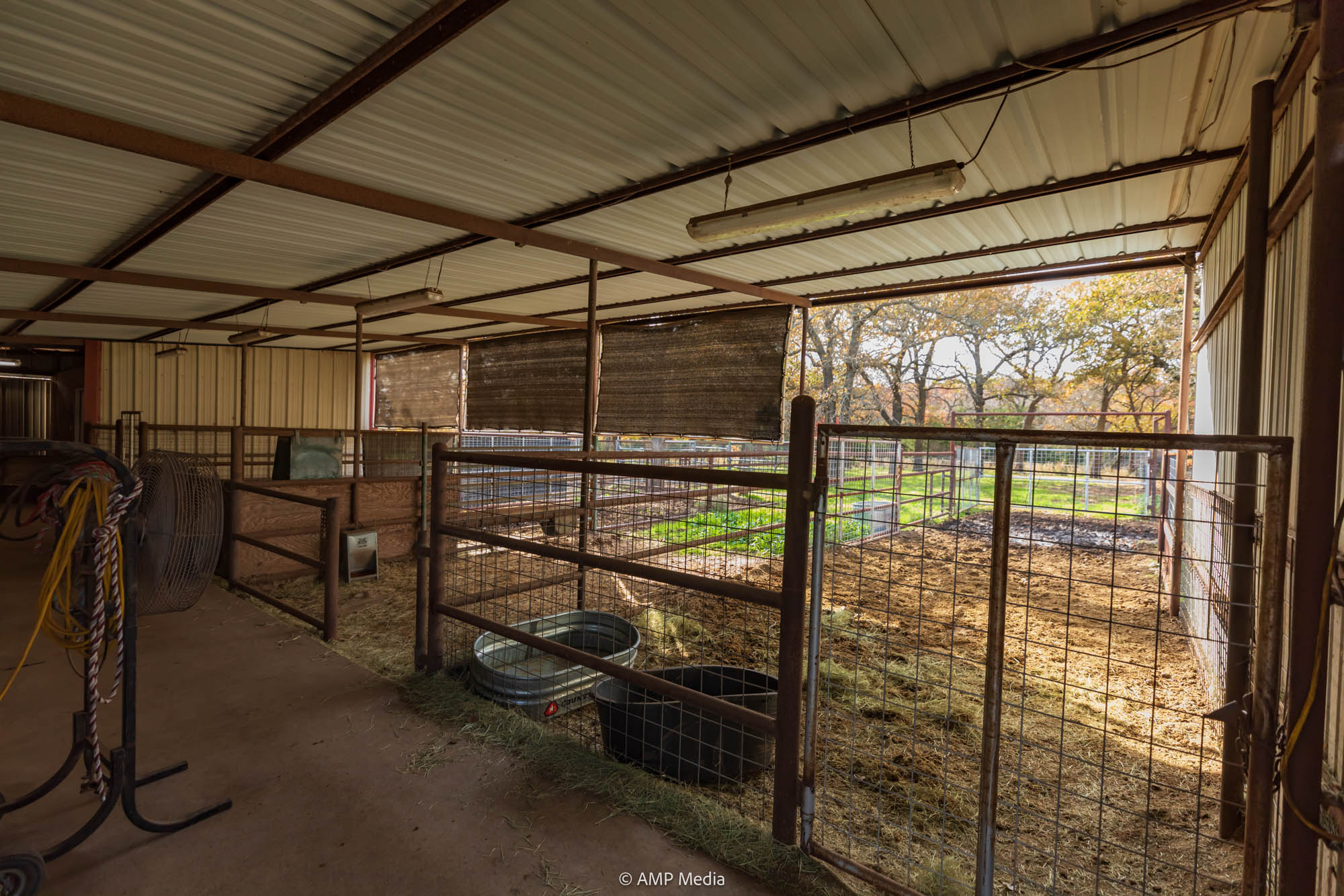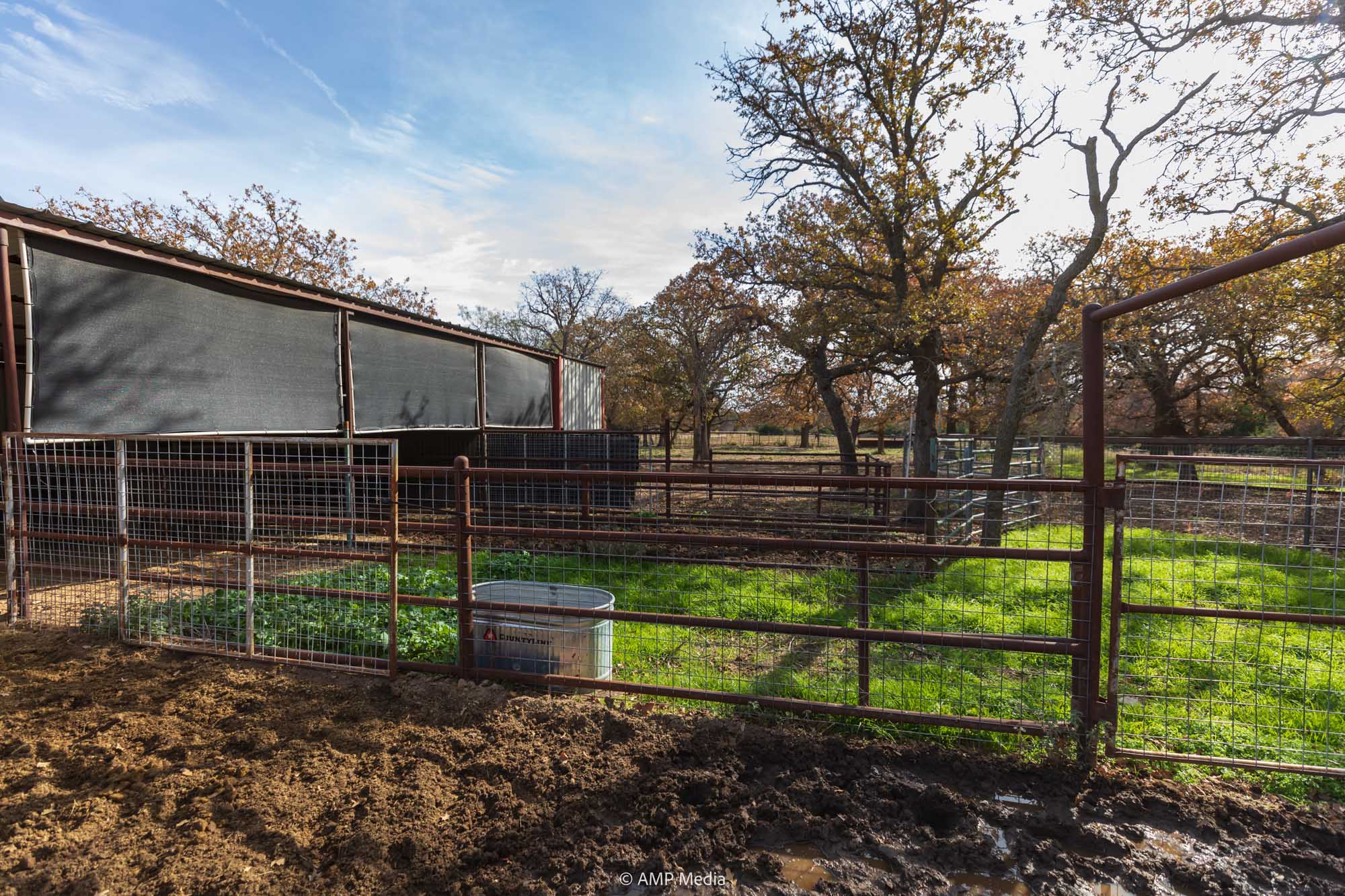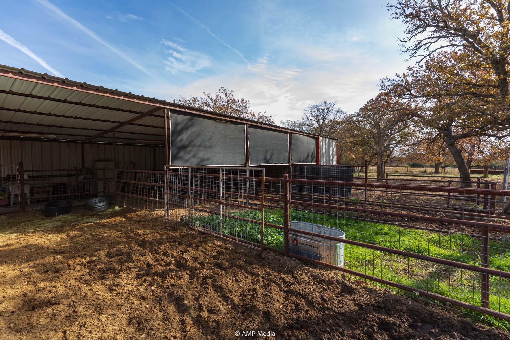 A charming three-bedroom, two-and-a-half-bath home is ideally positioned to overlook the oaks and a serene pond. The property also features a barn with horse stalls and a lighted roping arena, making it perfect for equestrian use.