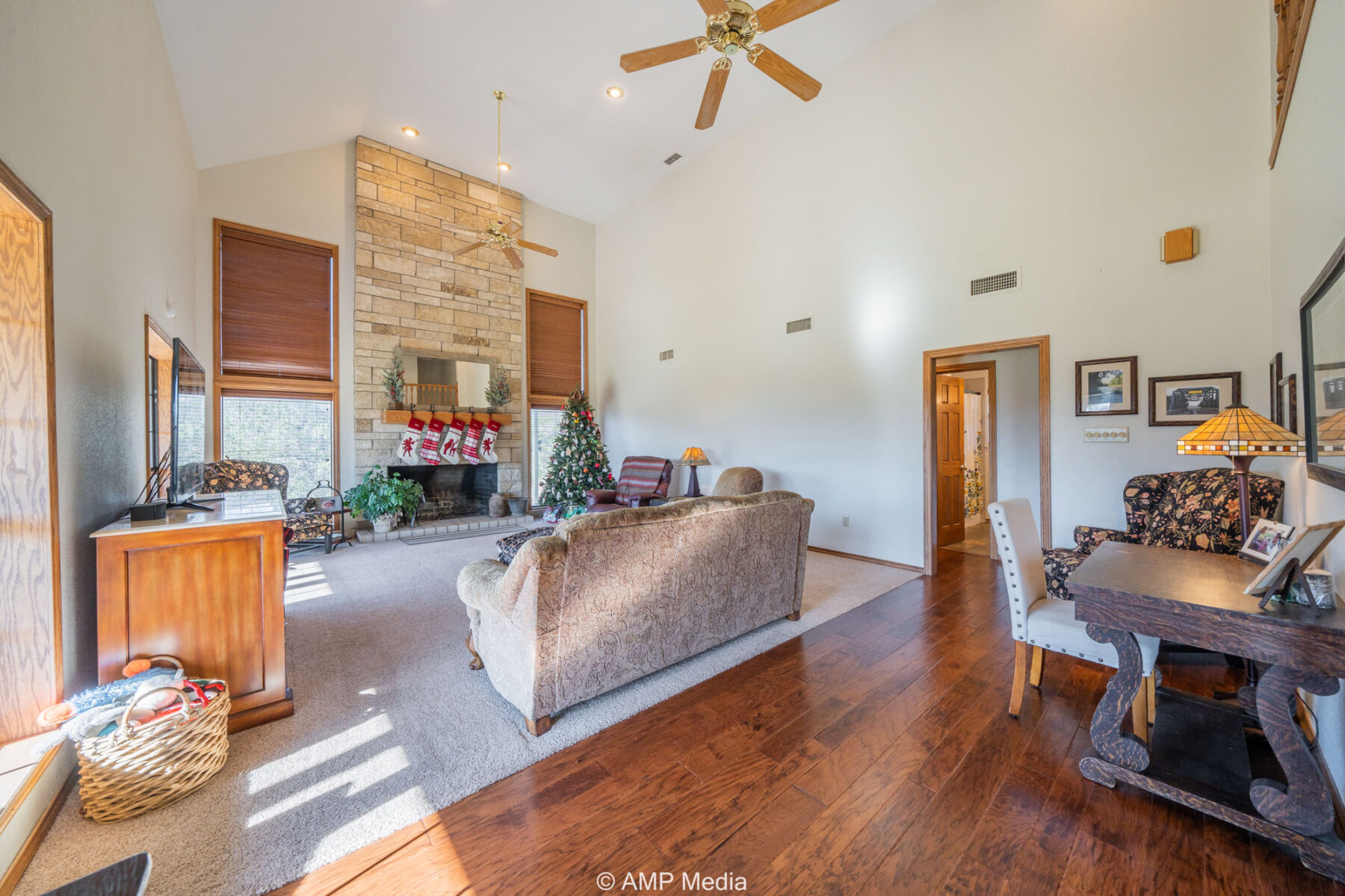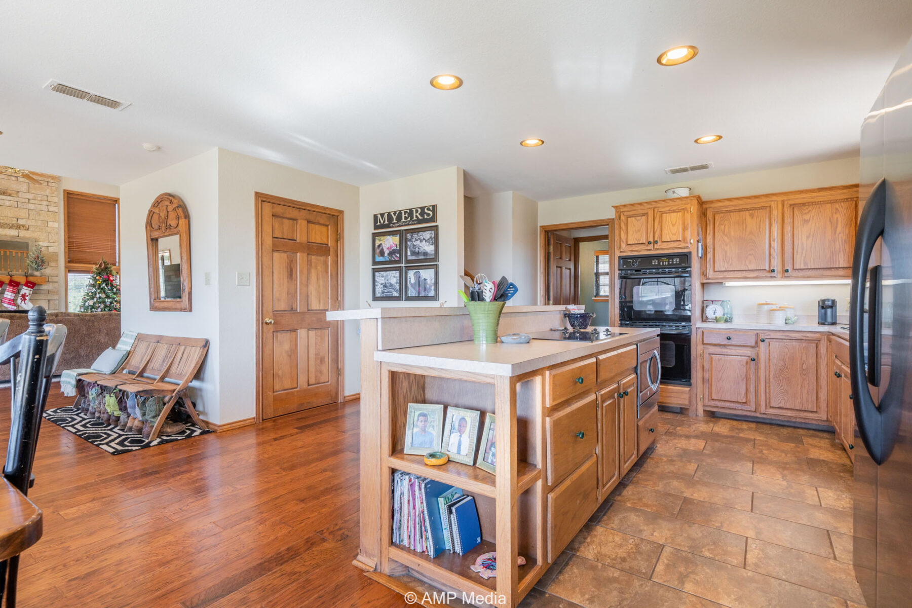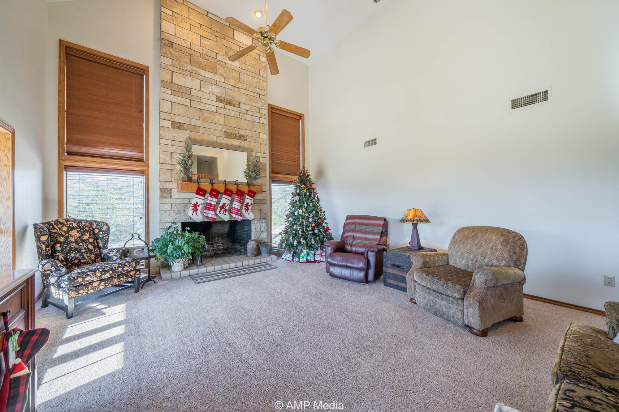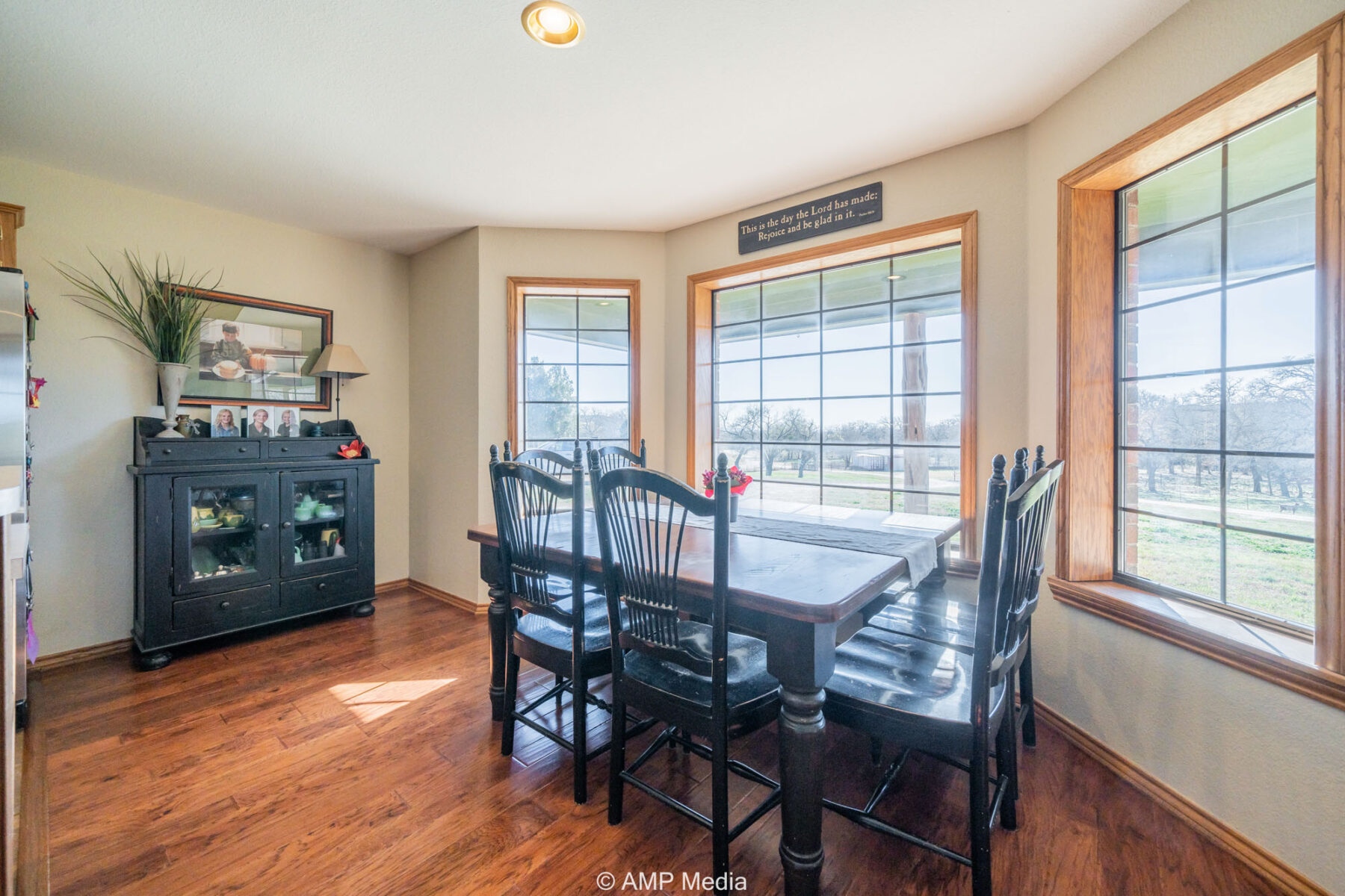 A charming three-bedroom, two-and-a-half-bath home is ideally positioned to overlook the oaks and a serene pond. The property also features a barn with horse stalls and a lighted roping arena, making it perfect for equestrian use.