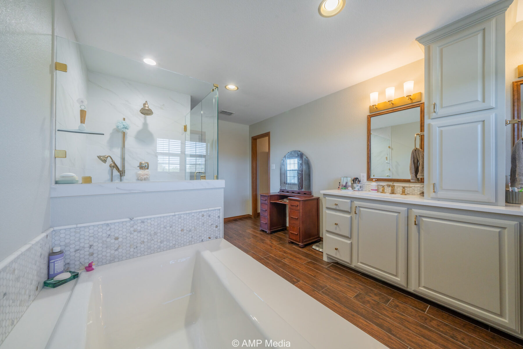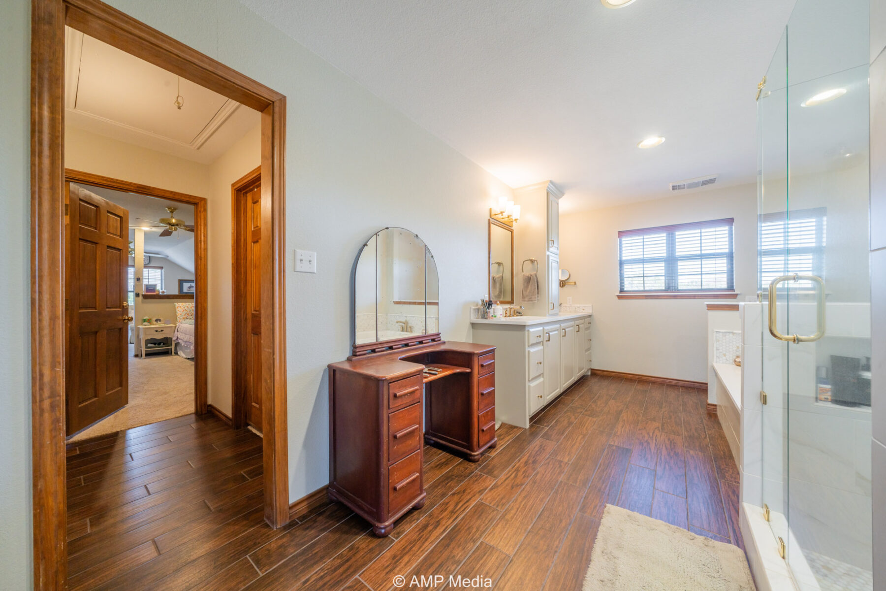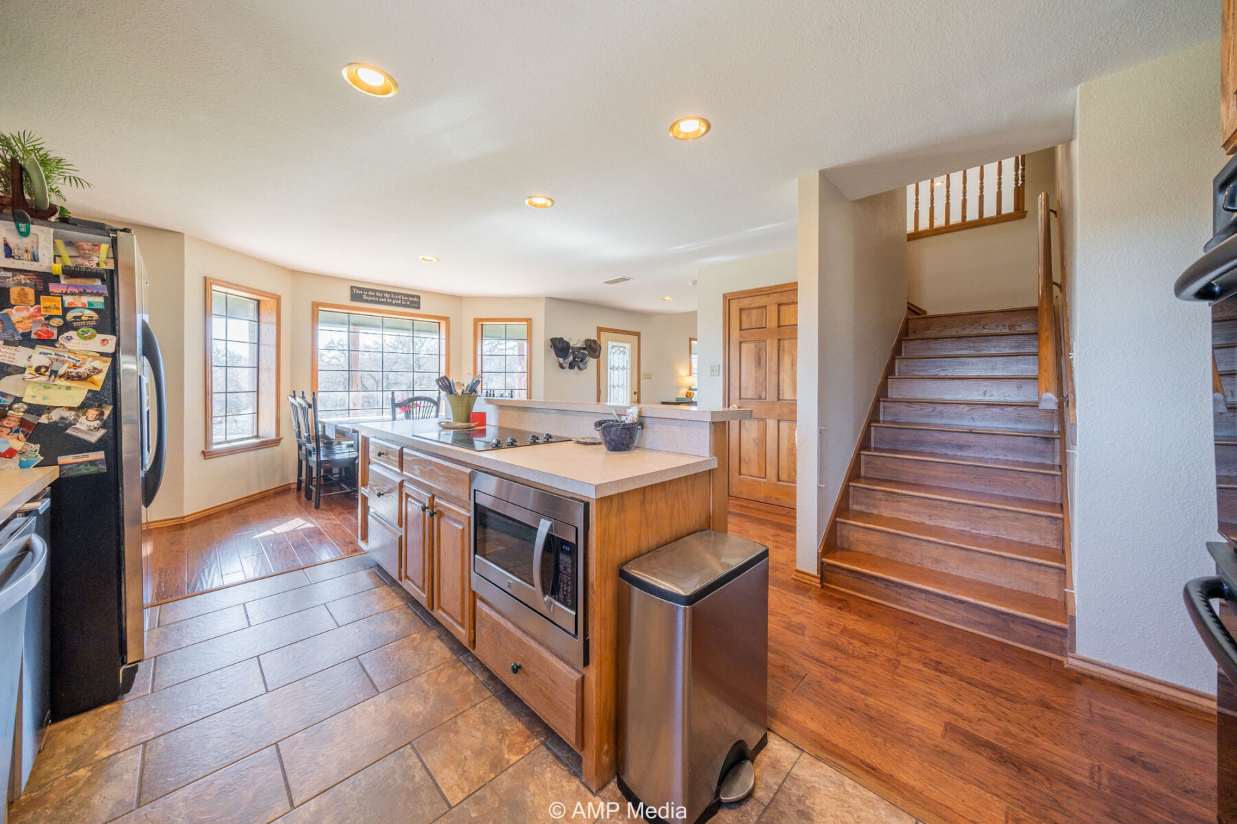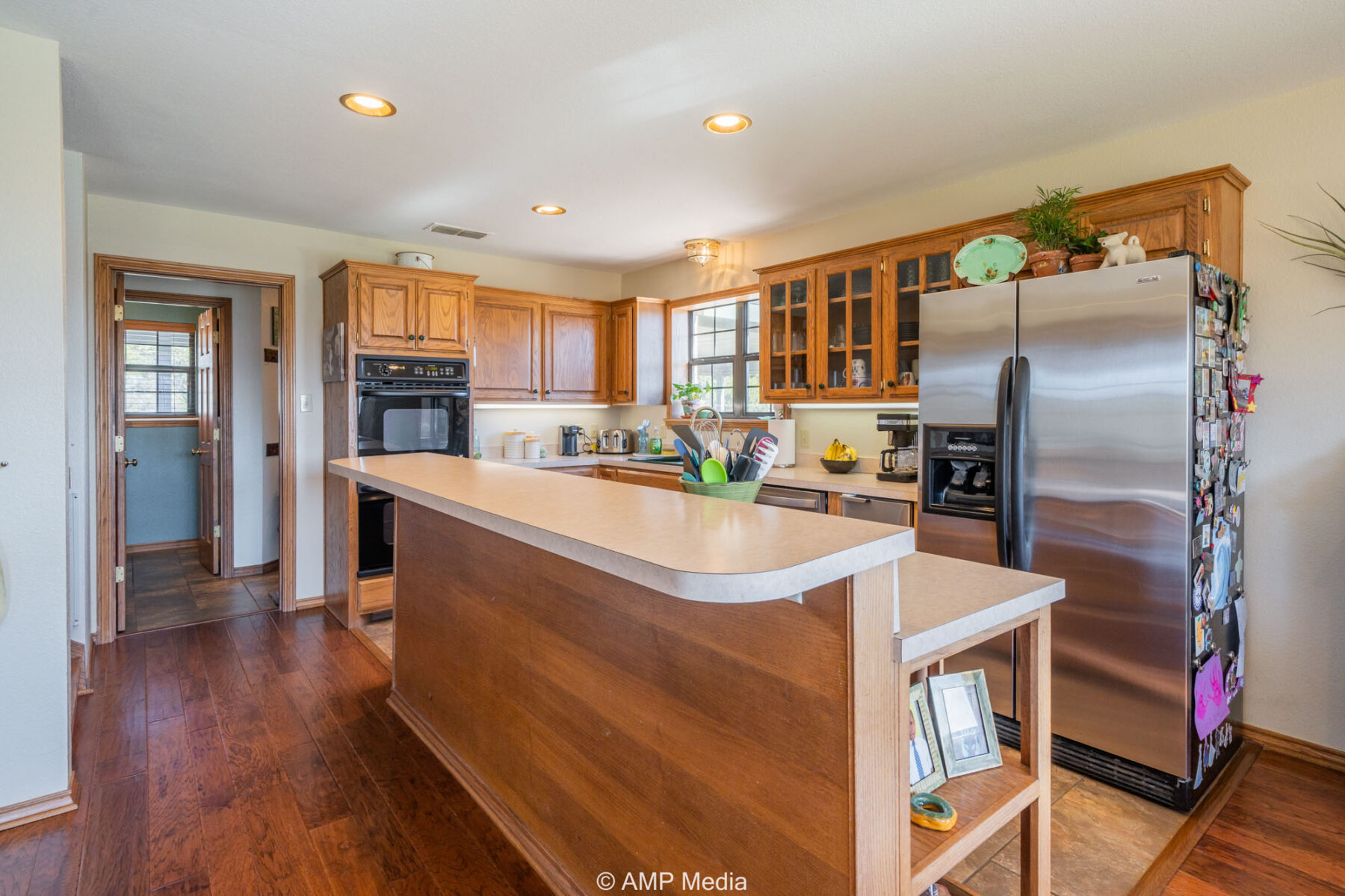 A charming three-bedroom, two-and-a-half-bath home is ideally positioned to overlook the oaks and a serene pond. The property also features a barn with horse stalls and a lighted roping arena, making it perfect for equestrian use.