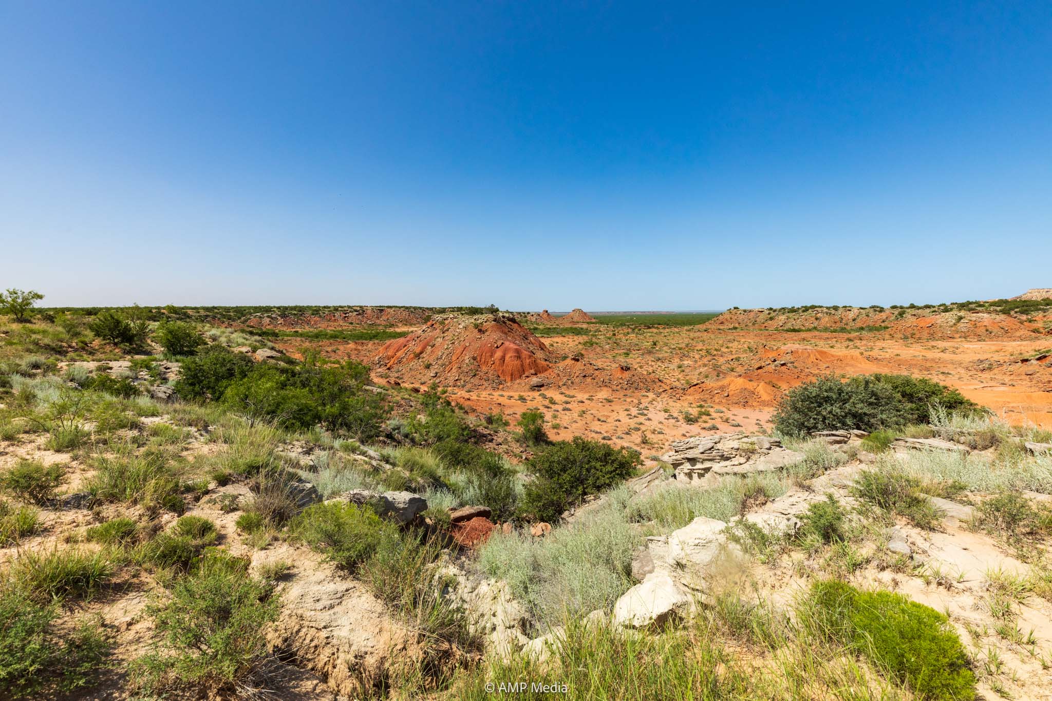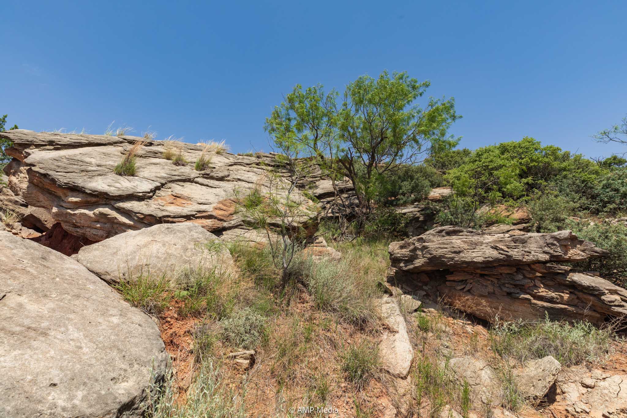 There is 180’ of relief across the ranch with elevations from 2400’ in the bottom to 2580’on top of the southern mesa. The elevation change is gradual and rolling in the bottoms with the steep bluffs falling from the mesa, creating an expansive horizon. The numerous drainages, tanks, and rolling landscape create unique features.