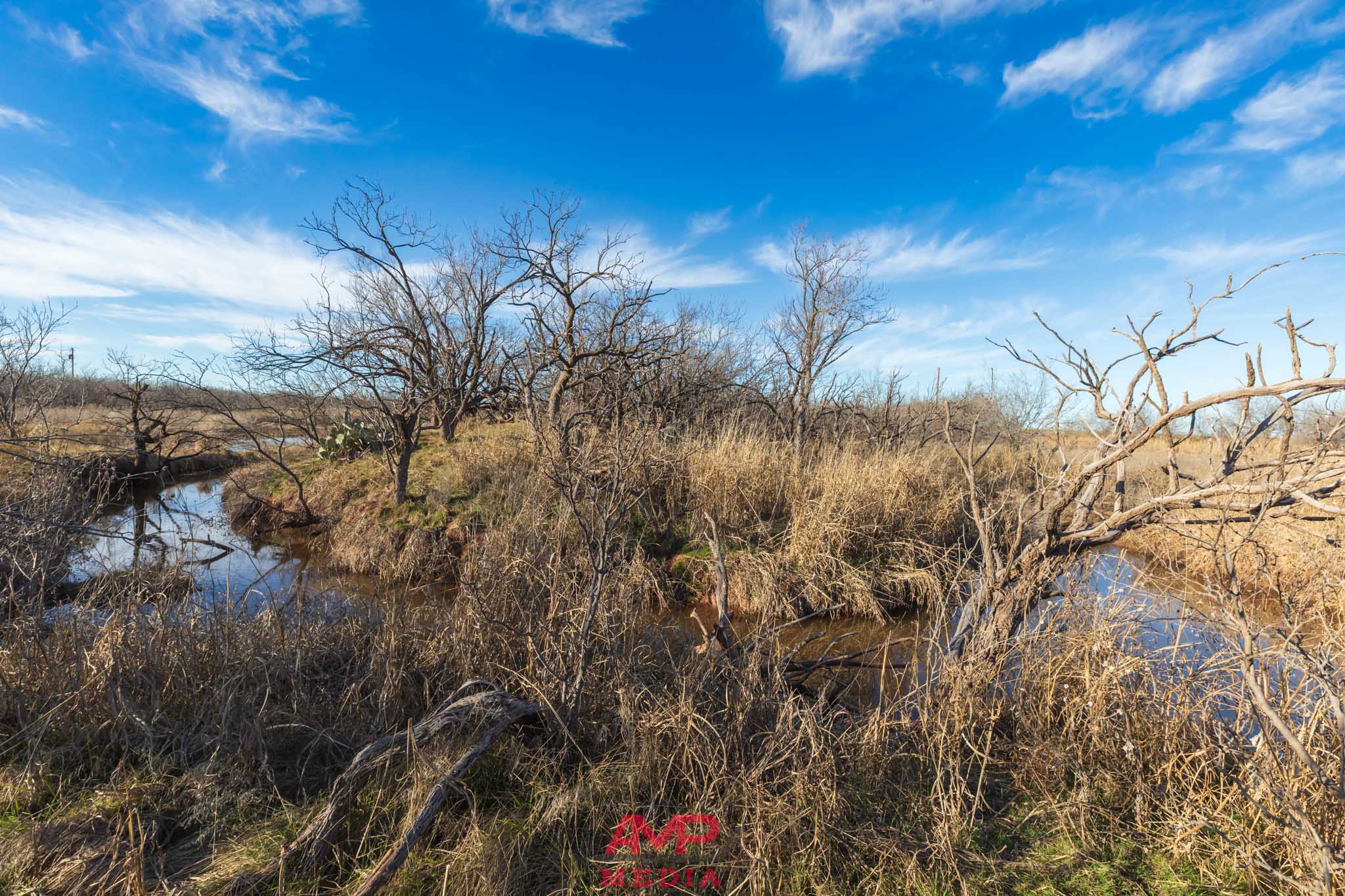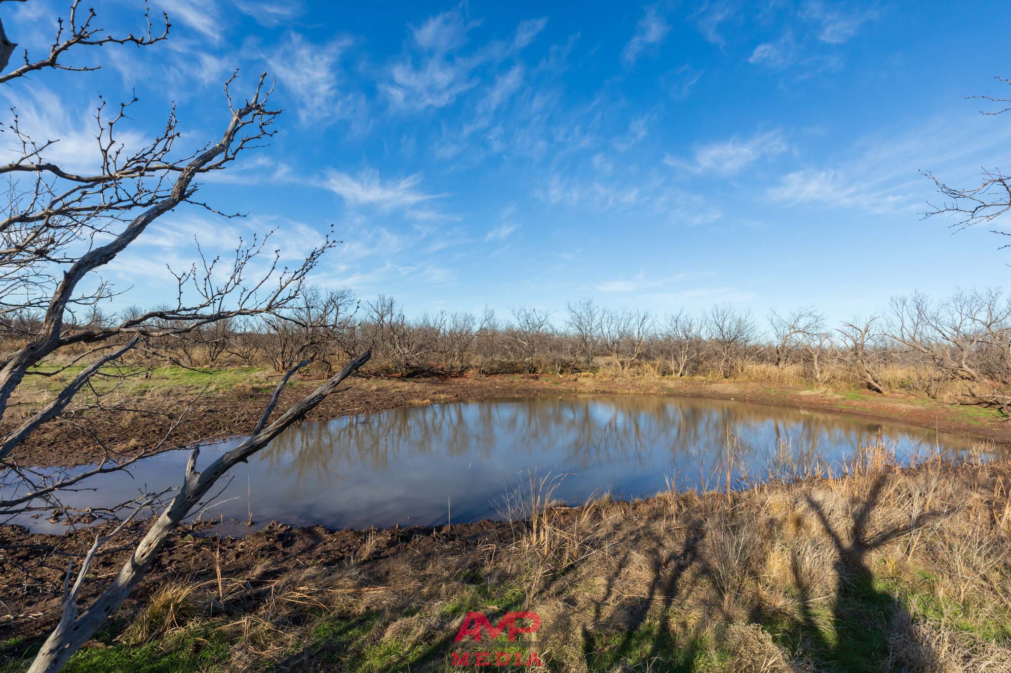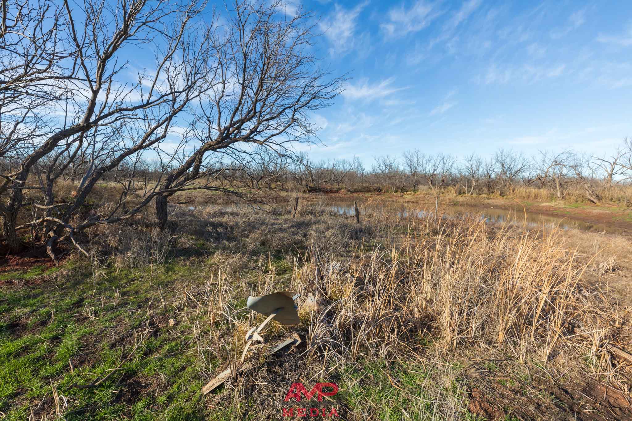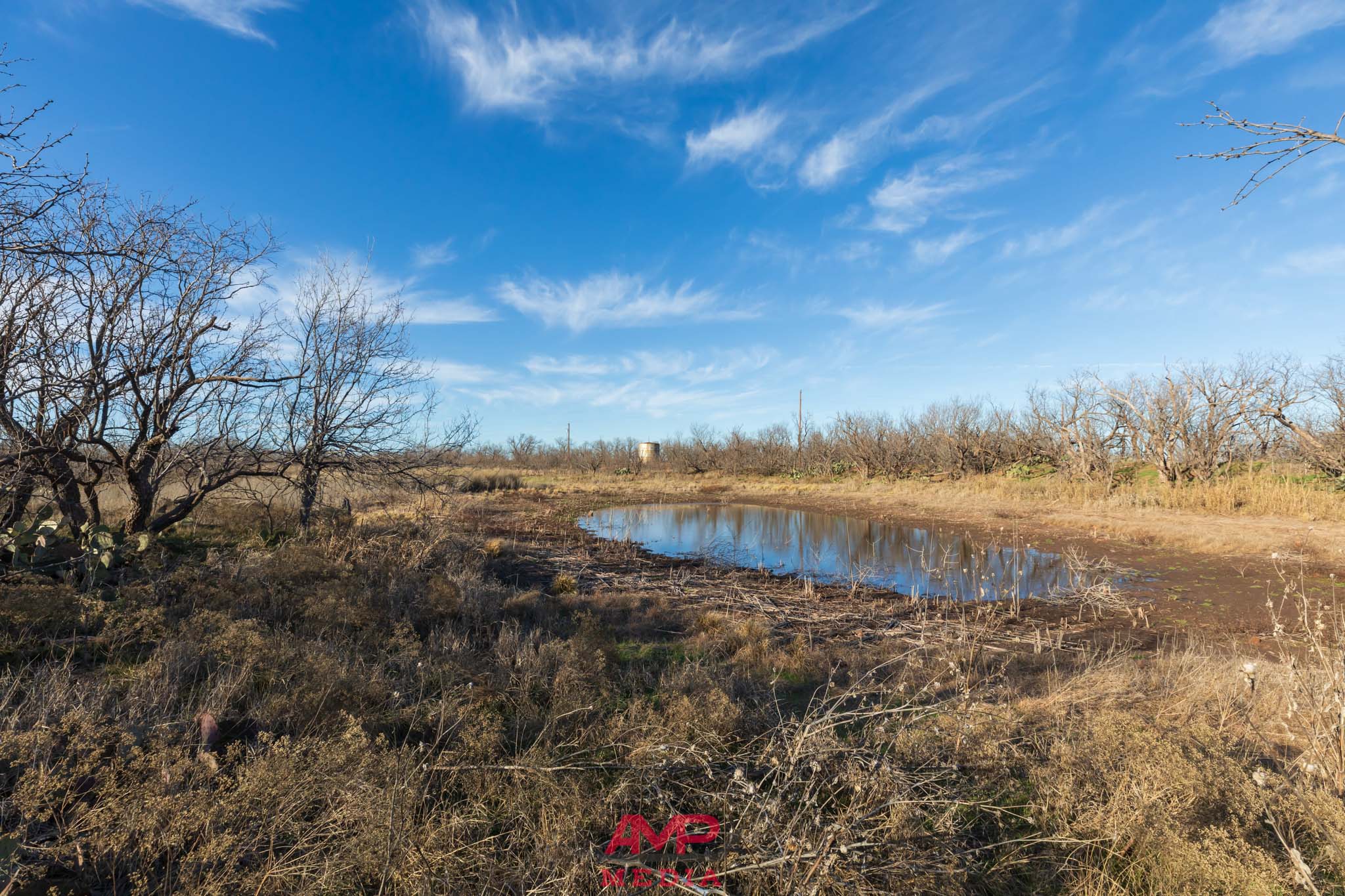 The property is mostly flat with some contour adjustment through the center of the property where the water travels and several stock tanks are located. The property does vary from 1620' to 1645' in elevation throughout this center part of the property.
