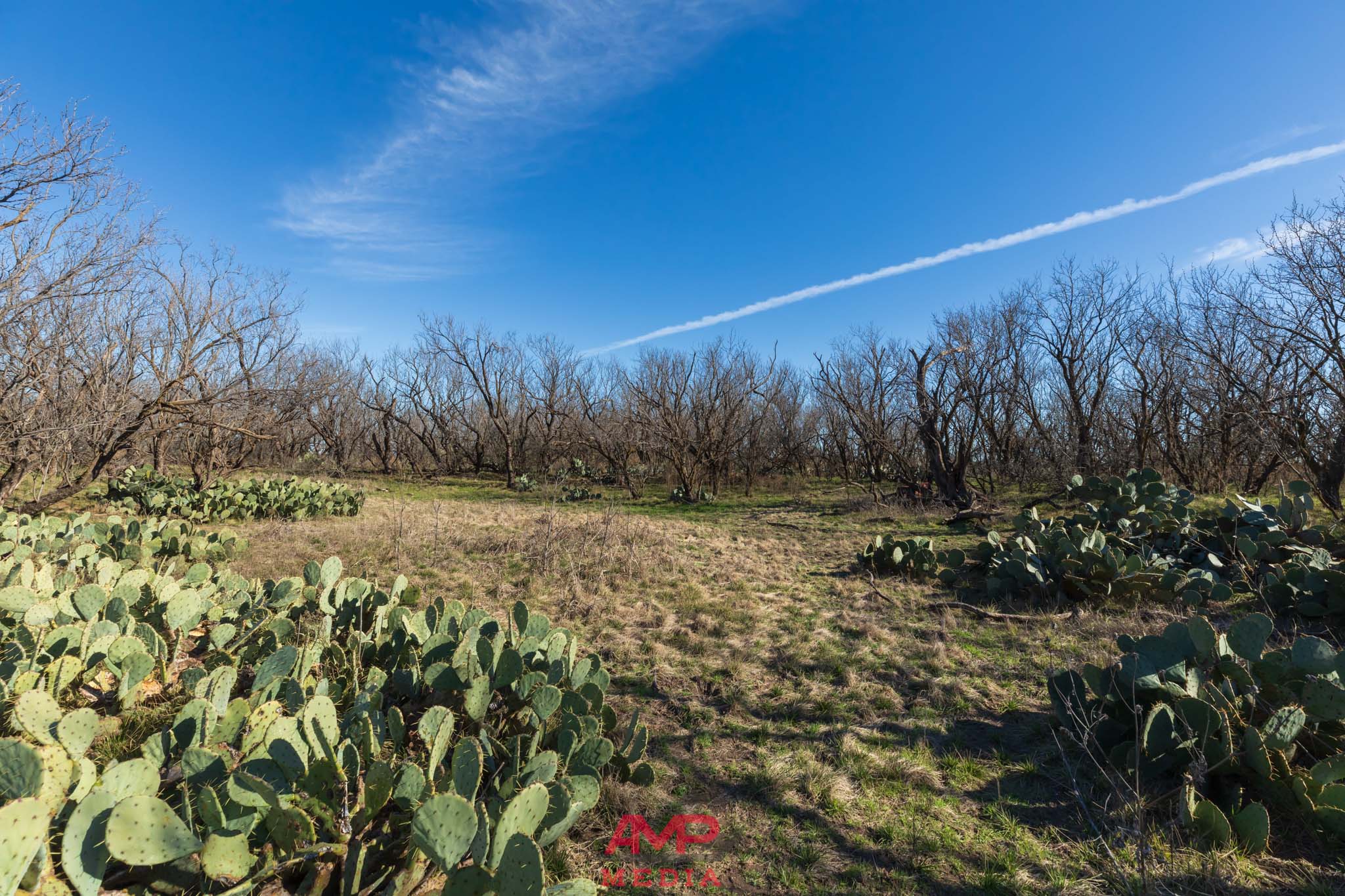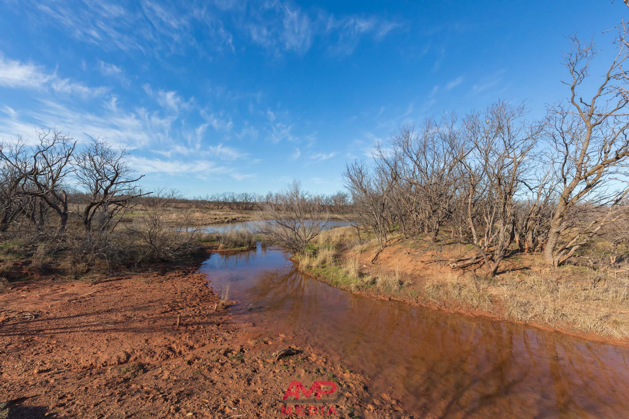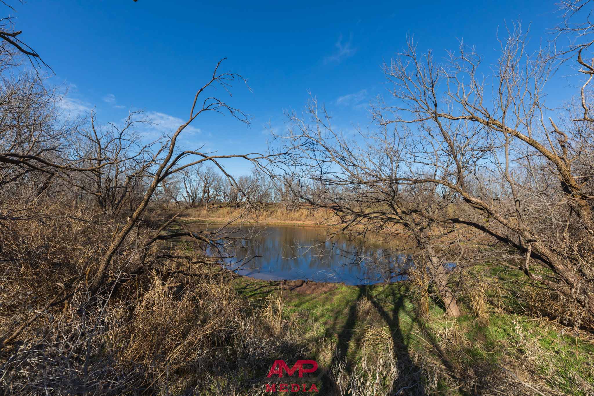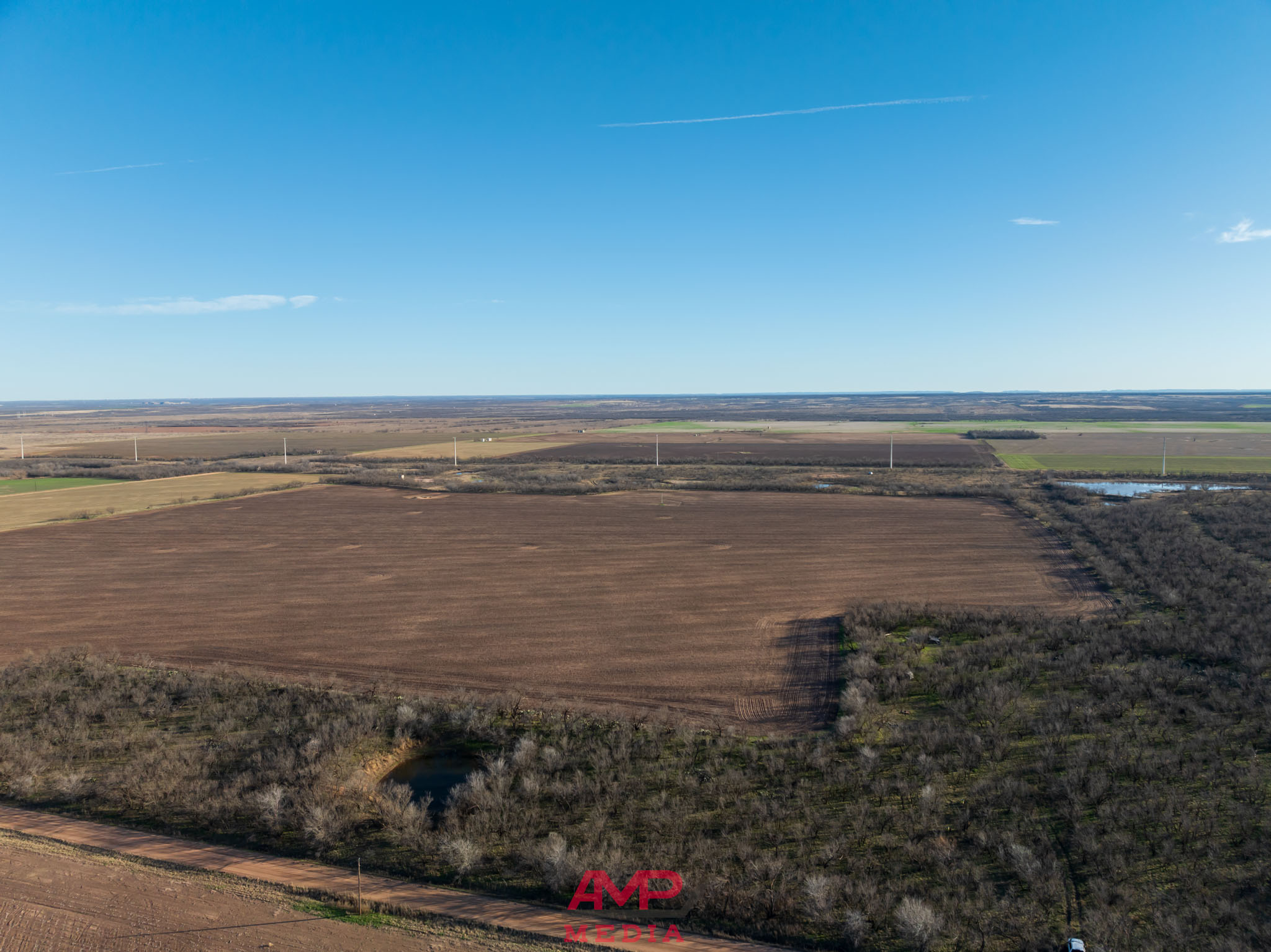 The property is mostly flat with some contour adjustment through the center of the property where the water travels and several stock tanks are located. The property does vary from 1620' to 1645' in elevation throughout this center part of the property.