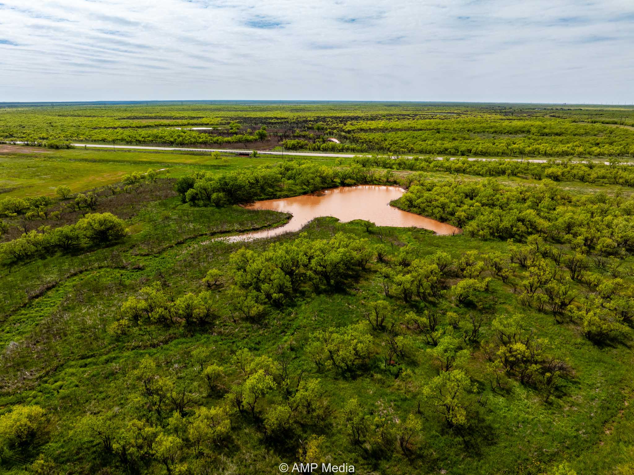 The typography is primarily flat to rolling native mesquite pasture with approximately 80 acres of cultivation. The terrain ranges from lush grass to thick pasture and cultivation with a little rugged elevation drop to the east pasture. The west side of the property has a wet weather creek. There is also income from an underground transmission line easement on the south that runs parallel with HWY 380.