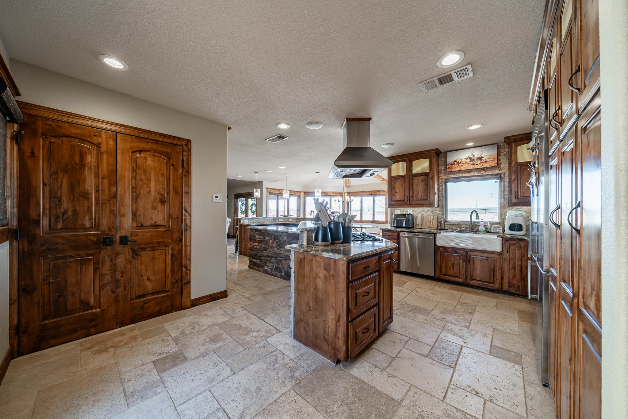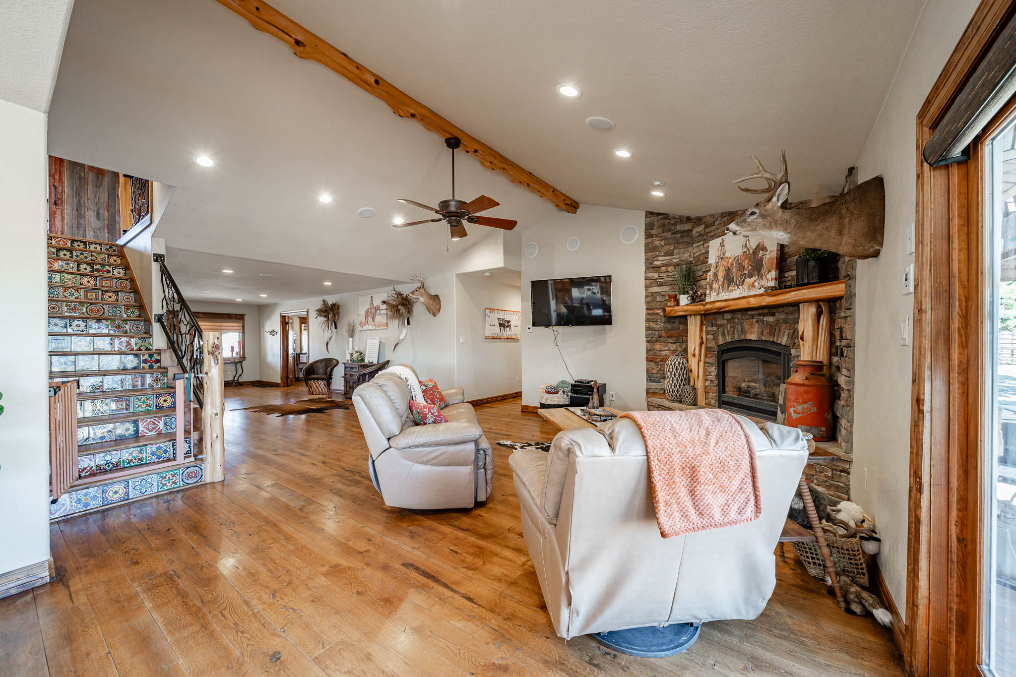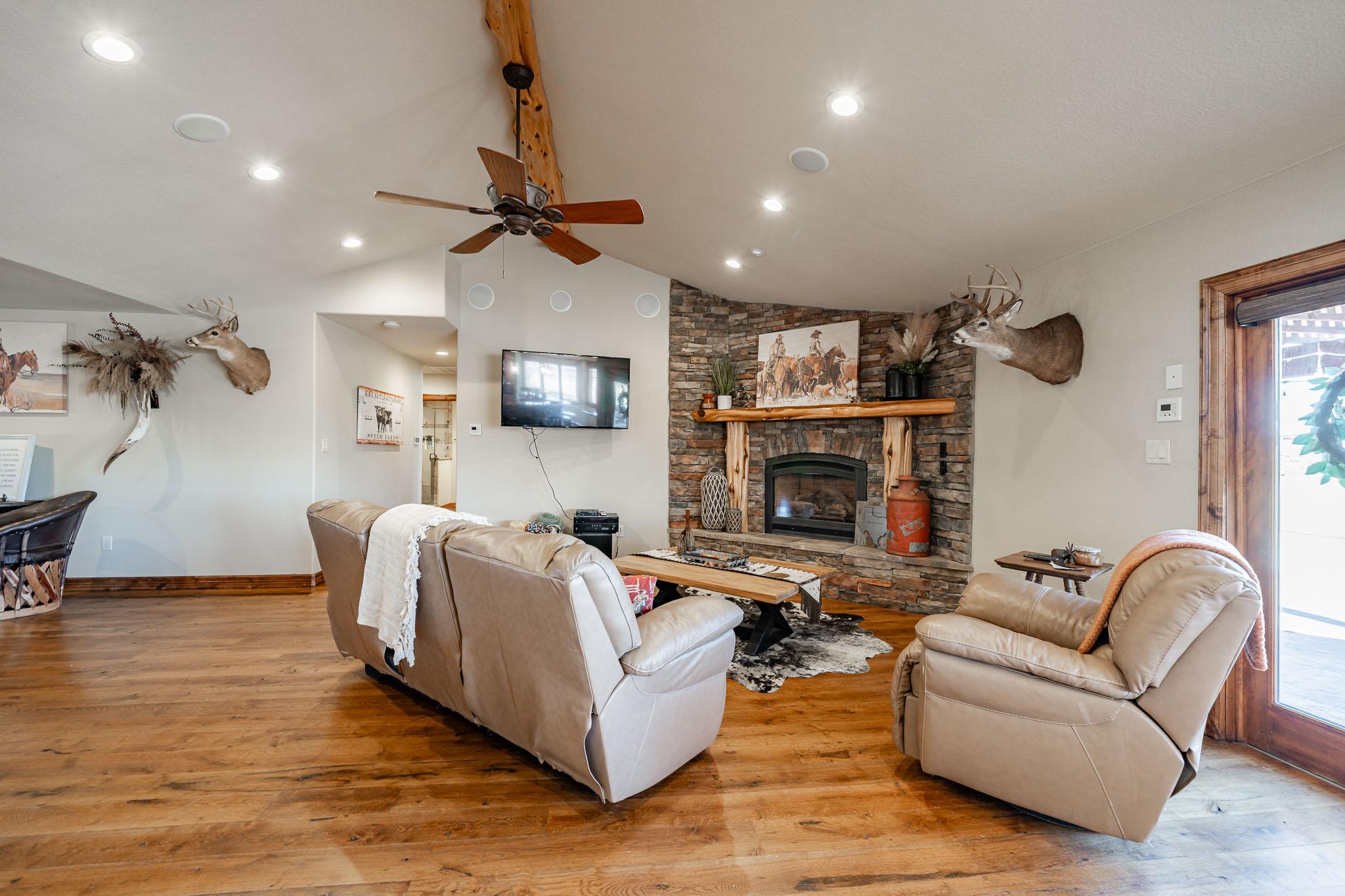 The property consists of a beautiful rock four-bedroom, four-bath western décor style home accompanied by a heated attached garage, car port, insulated shop, equipment shed, and swimming pool. Not to mention two sets of cattle pens and livestock sheds.