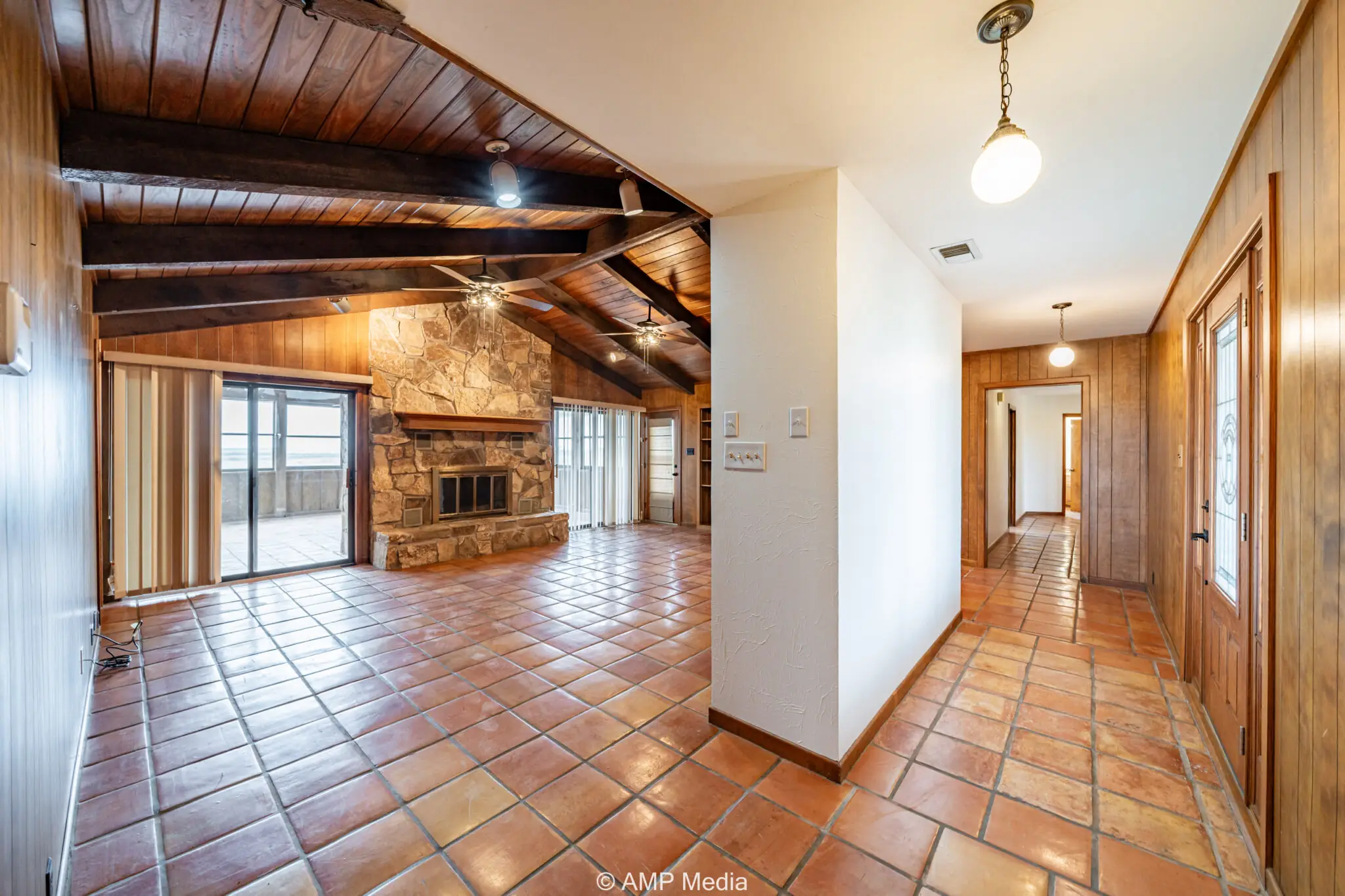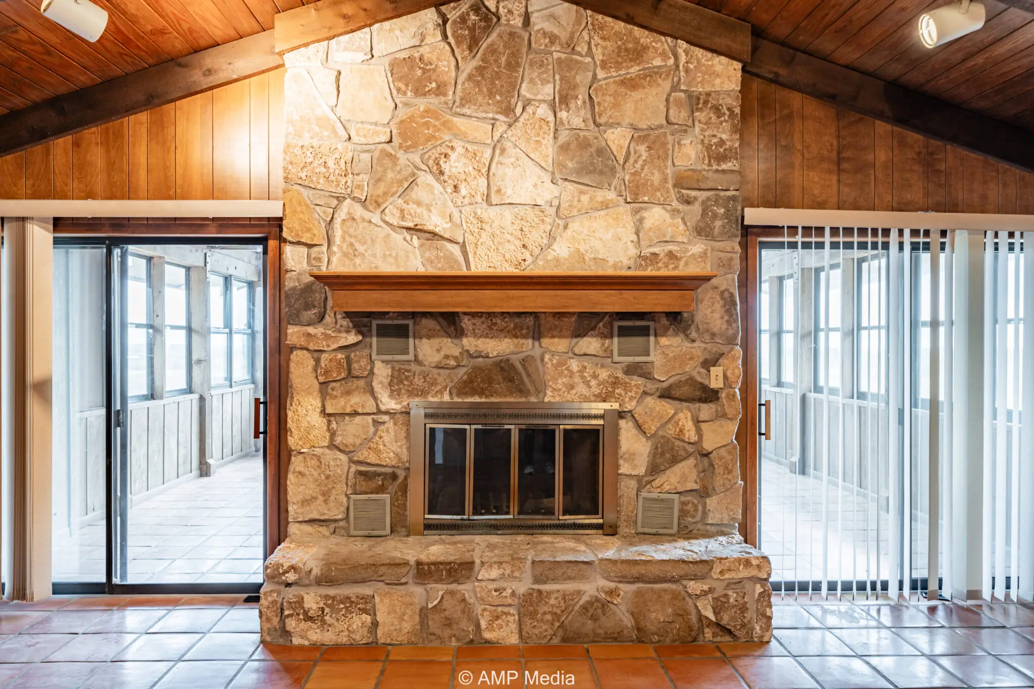 Residence and Improvements: The ranch home was built in 1979 and holds three bedrooms and two bathrooms. The vaulted living room with rock fireplace is a warm place to gather. Step out on to the sunroom that overlooks the pond and dock below to keep an eye on those enjoying the water. The basement also has a rock fire place with easy access to the outdoor fun. The primary bedroom windows give you a panoramic view of the pond, arena, and the road to watch guests approach.