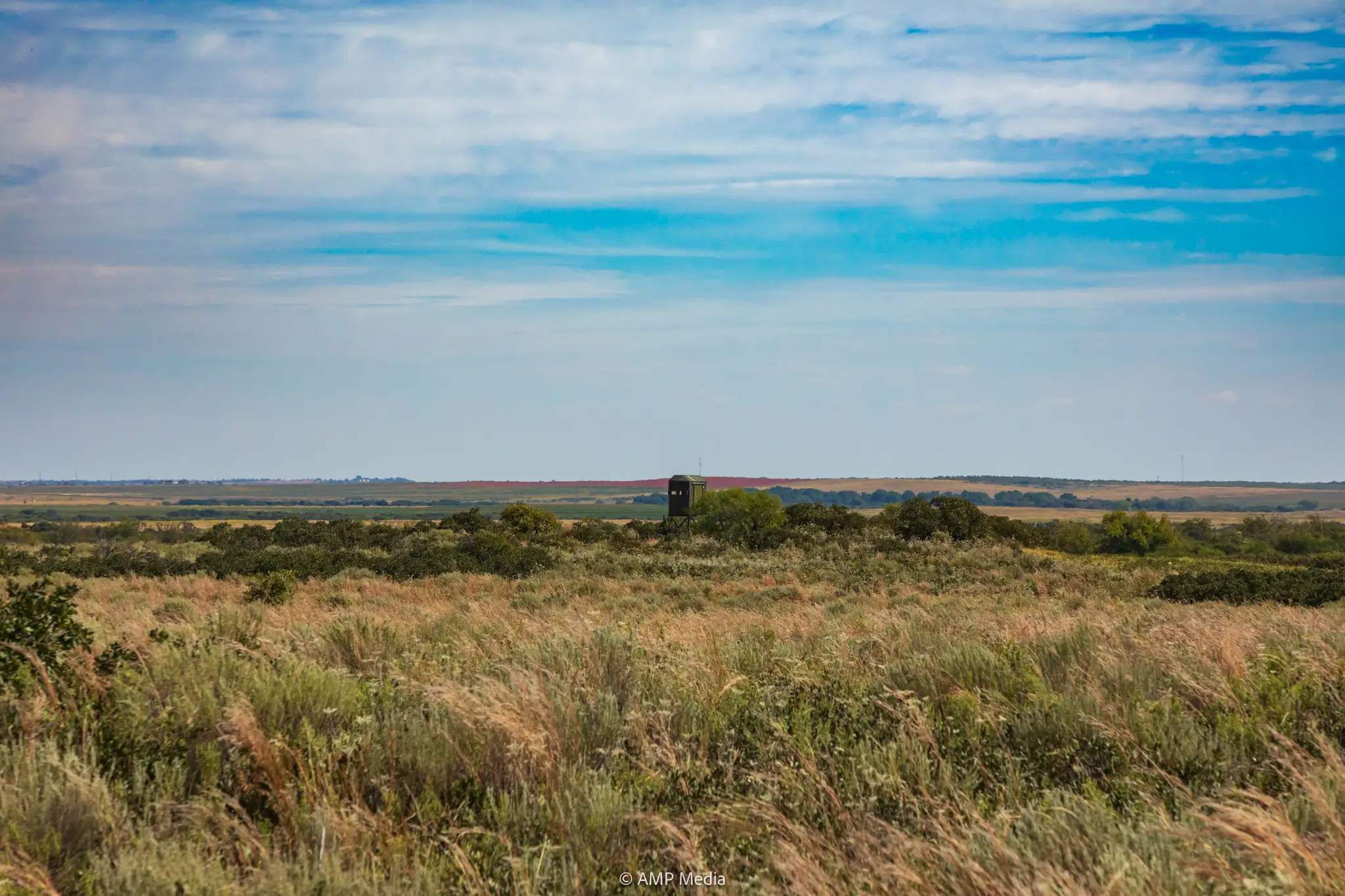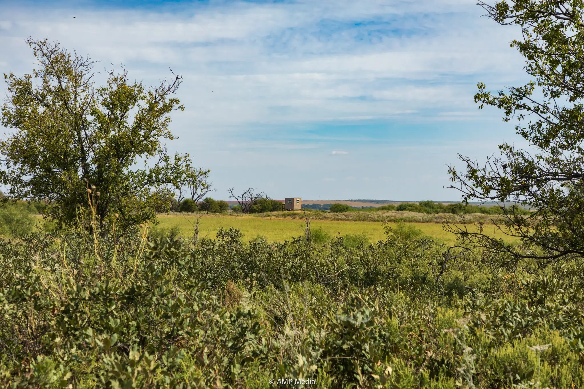 Cover: The ranch’s cover is diverse. About half is mesquite, with the remainder comprised of low-growth shin oak. There are also motts of tall oaks and hackberry. These taller oaks provide nice roosting trees for turkeys. Food plots have been thoughtfully cleared out in different locations throughout the ranch. The owners have created the perfect habitat to draw in and hold lots of wildlife.