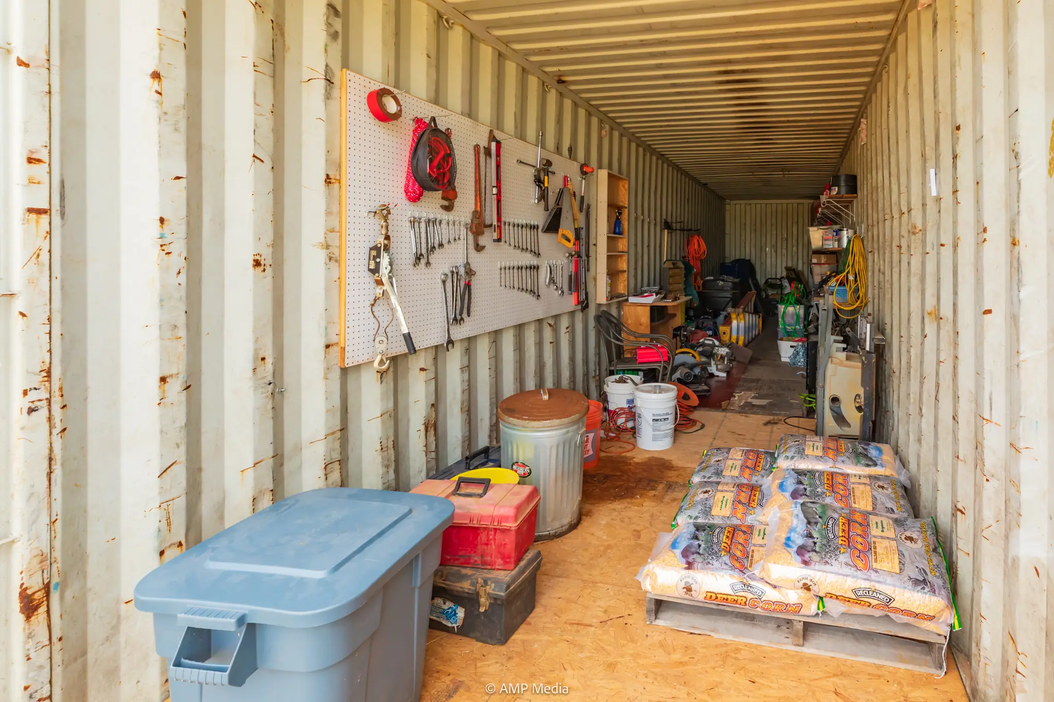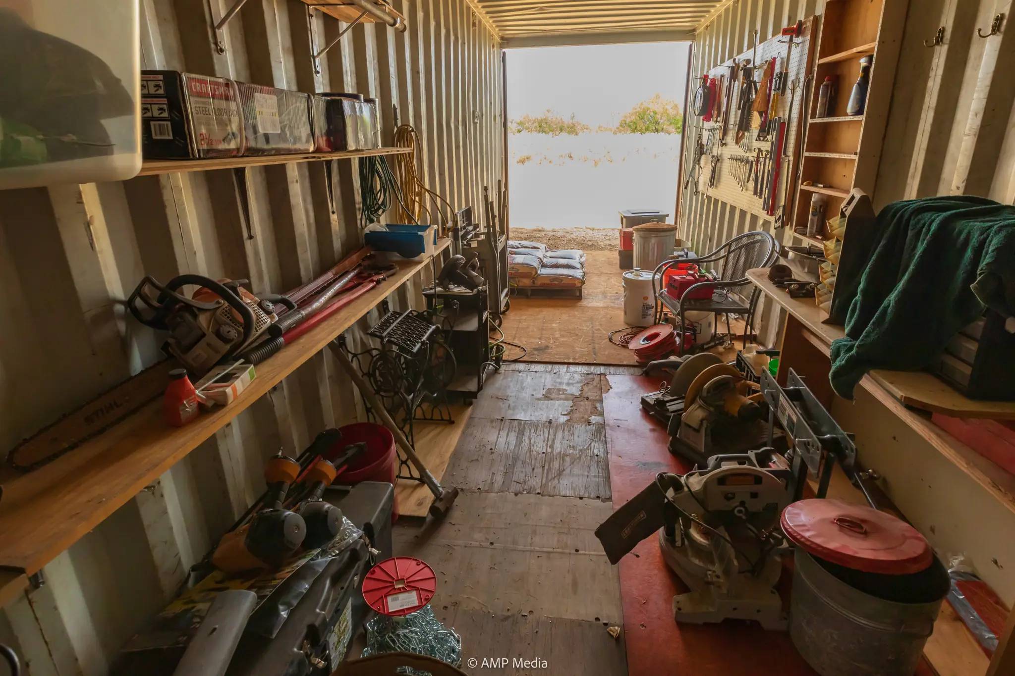 Residence and Improvements: Improvements include a high-cube sea container with a 20-ft overhang on each side. At full price, the owner will let all his equipment go with the sale. The equipment list is extensive and includes an 85hp tractor with many implements, cargo and flatbed trailers, tools, etc.